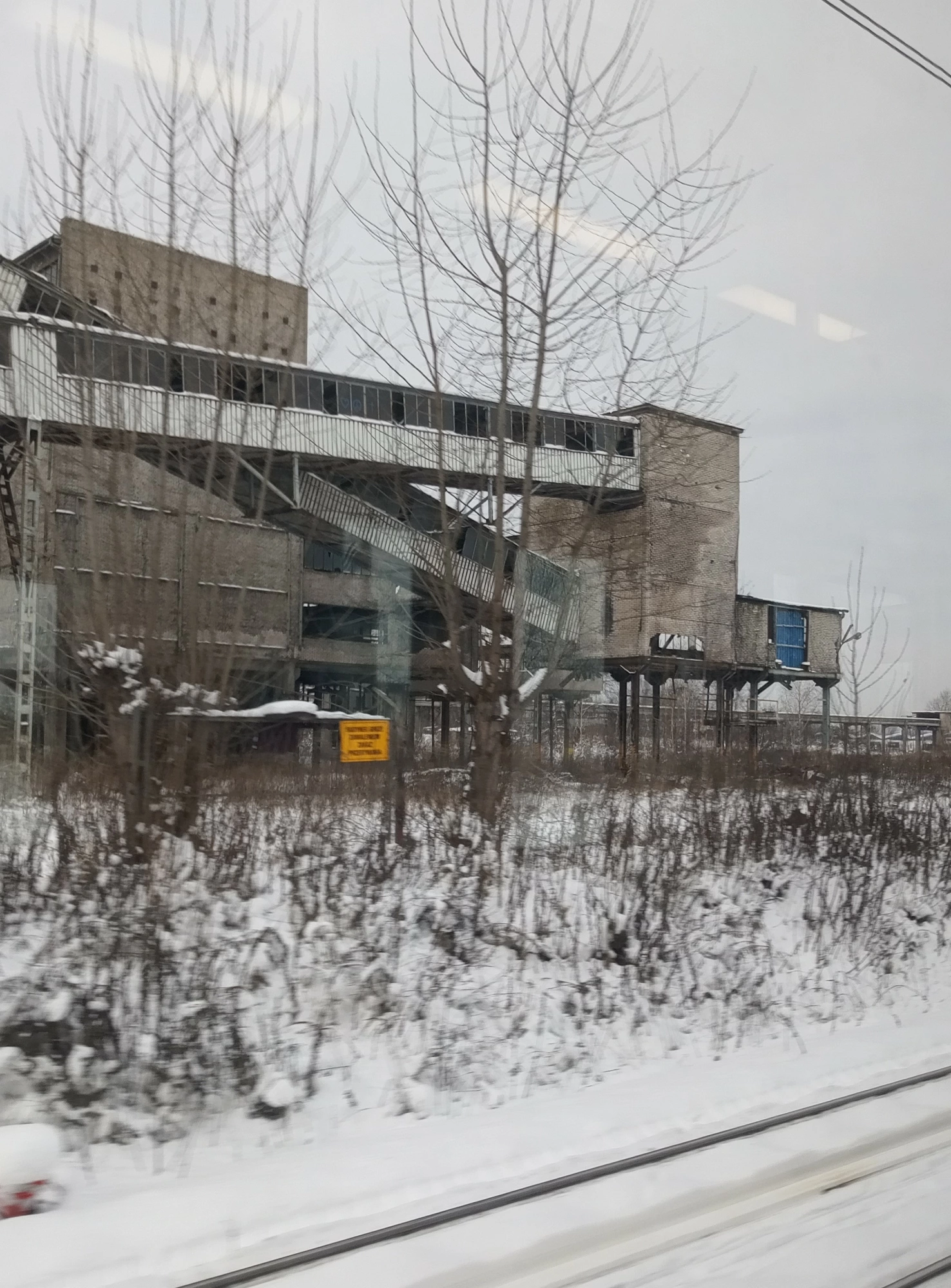 15 stycznia 2021 , Sortownia w trakcie wyburzania. Zdjęcie z pociągu.