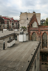 7 maja 2009 , Widok z budynku F Salem (po wojnie Pogotowia R.) Po lewej, kamienice przy Traugutta. W centrum Kościół Chrystusowy (fragment) - dalej szczyt kamienicy nr 106.Skomentuj zdjęcie |