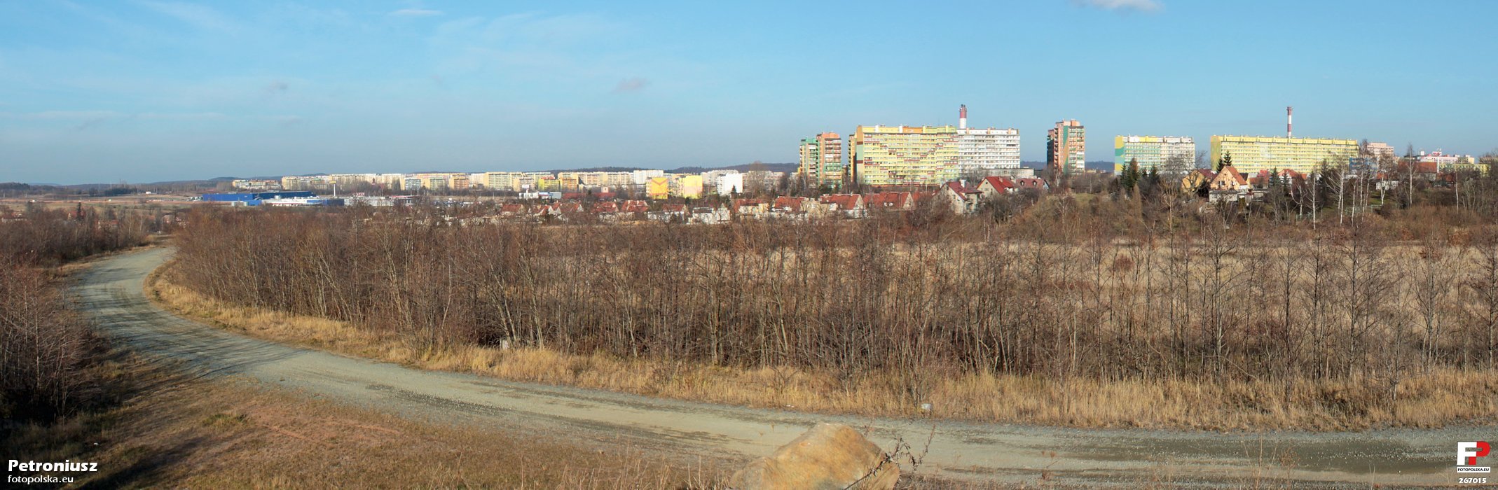grudzień 2011 , Na pierwszym planie zalążek zachodniego odcinka wałbrzyskiej obwodnicy. Od momentu, kiedy przerwano prace, okolice budowy mocno zarosły samosiejkami. Po prawej wieżowce dzielnicy Piaskowa Góra, po lewej w oddali dzielnica Podzamcze. Niebieskie hale po lewej to Tesco i Makro.Skomentuj zdjęcie
