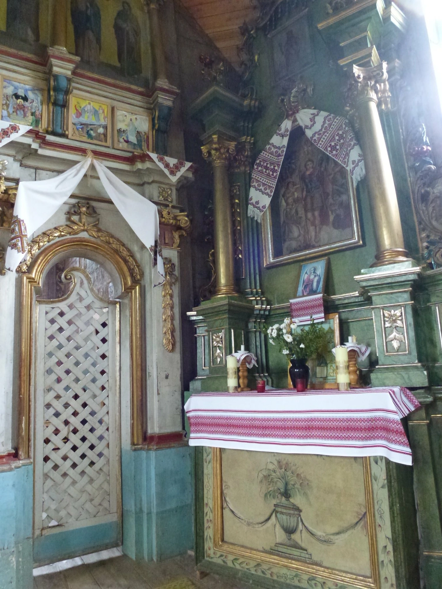 5 maja 2012 , Ikona św. Michała Archanioła w południowym ołtarzu cerkwi św. Michała Archanioła w Turzańsku, po prawej stronie wrót diakońskich jest miejsce na ikonę chramową czyli patronaSkomentuj zdjęcie |
