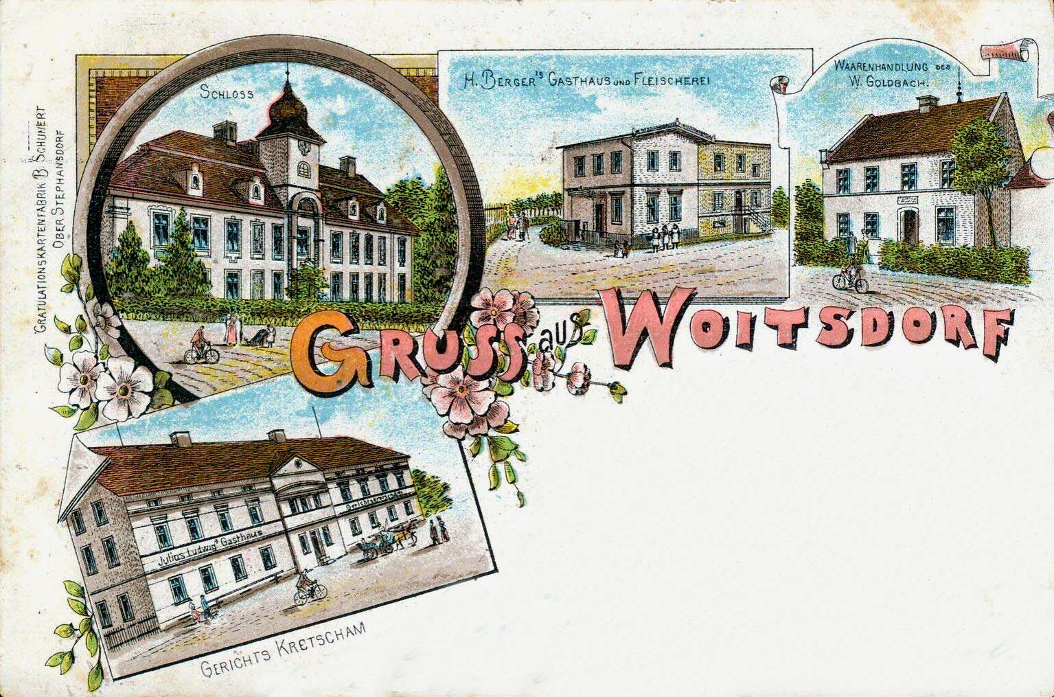 1900 , Na górnych zdjęciach: pałac, gospoda i budynek ze sklepem W. Goldbacha, na dolnym karczma sądowaSkomentuj zdjęcie |