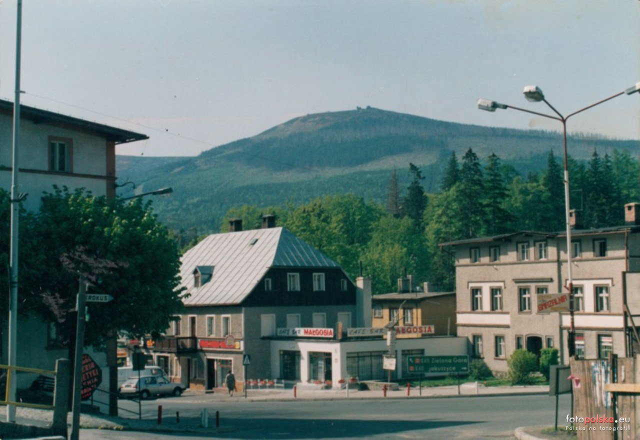 Lata 1988-1994 , Skrzyżowanie ulic Jedności Narodowej i Sikorskiego w Szklarskiej Porębie.Skomentuj zdjęcie |