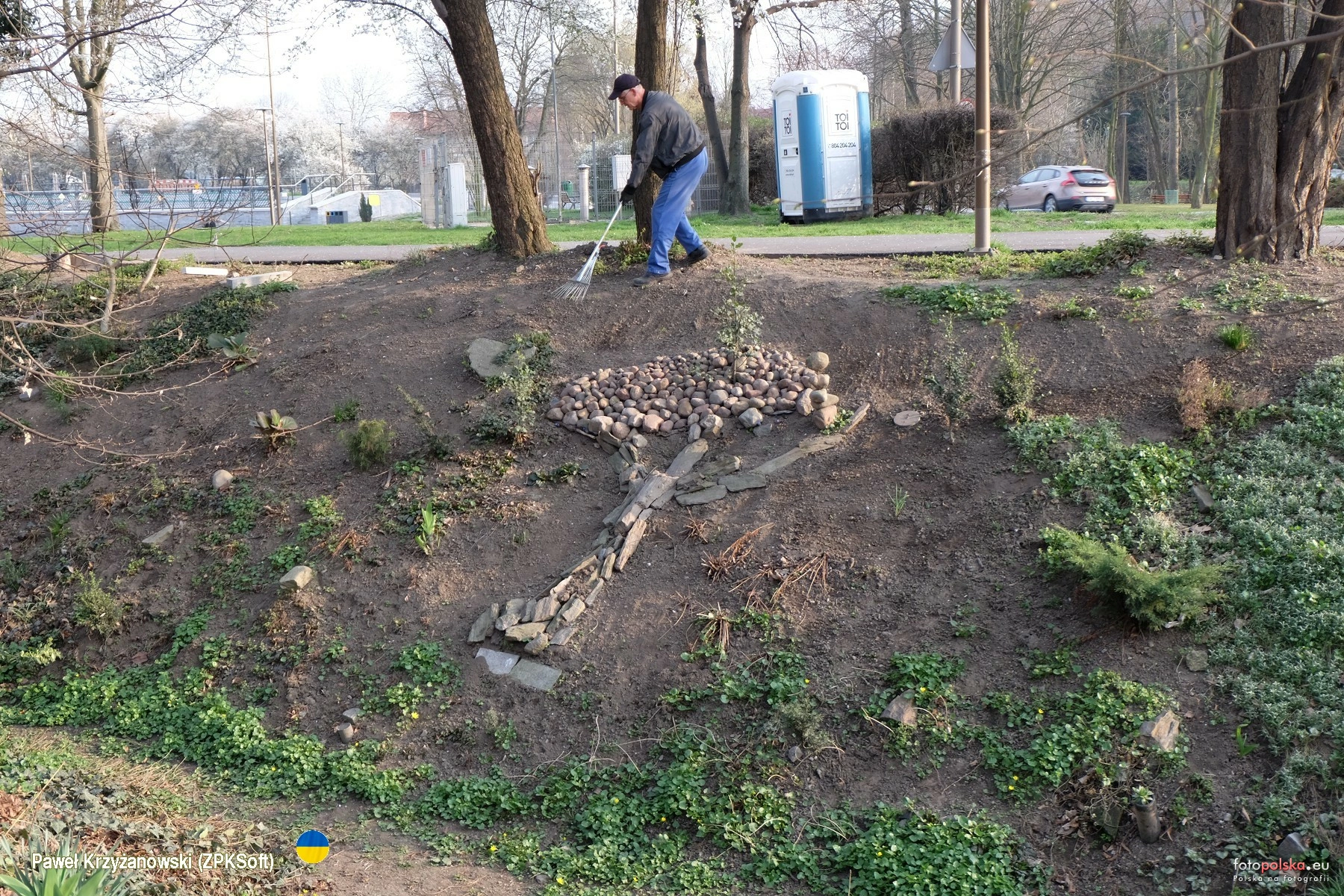 29 marca 2025 , Suchy kanał dawnej Młynówki, ostatnimi czasy oczyszczony i obsadzony roślinami przez mieszkańców okolicznych domów. Ktoś z kamieni ułożył drzewo.Skomentuj zdjęcie |