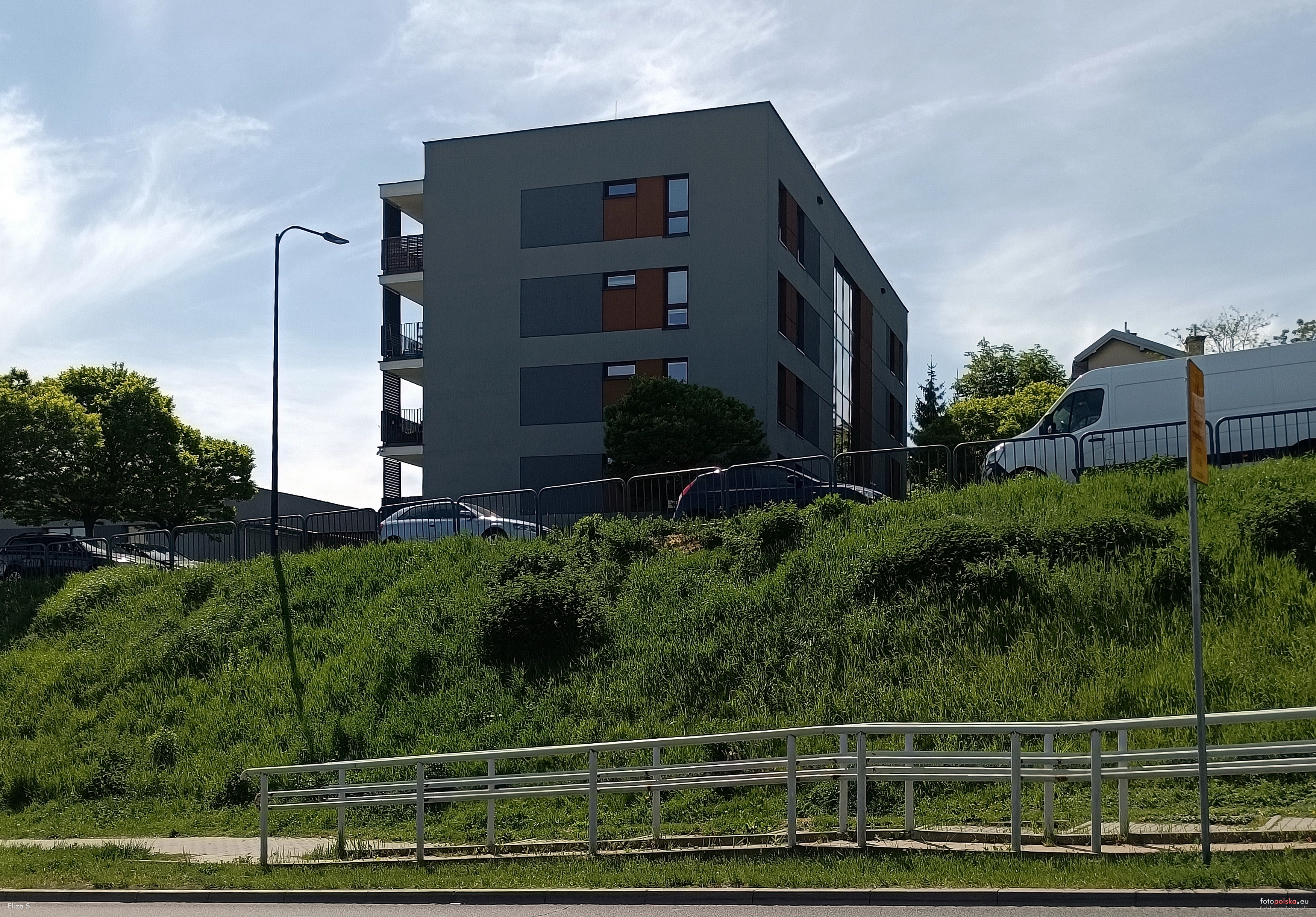 8 maja 2024 , Blok mieszkalny Cyprysowa 14 w głębi na skarpie, widok z ul. Tomasza Strzębosza.Skomentuj zdjęcie |