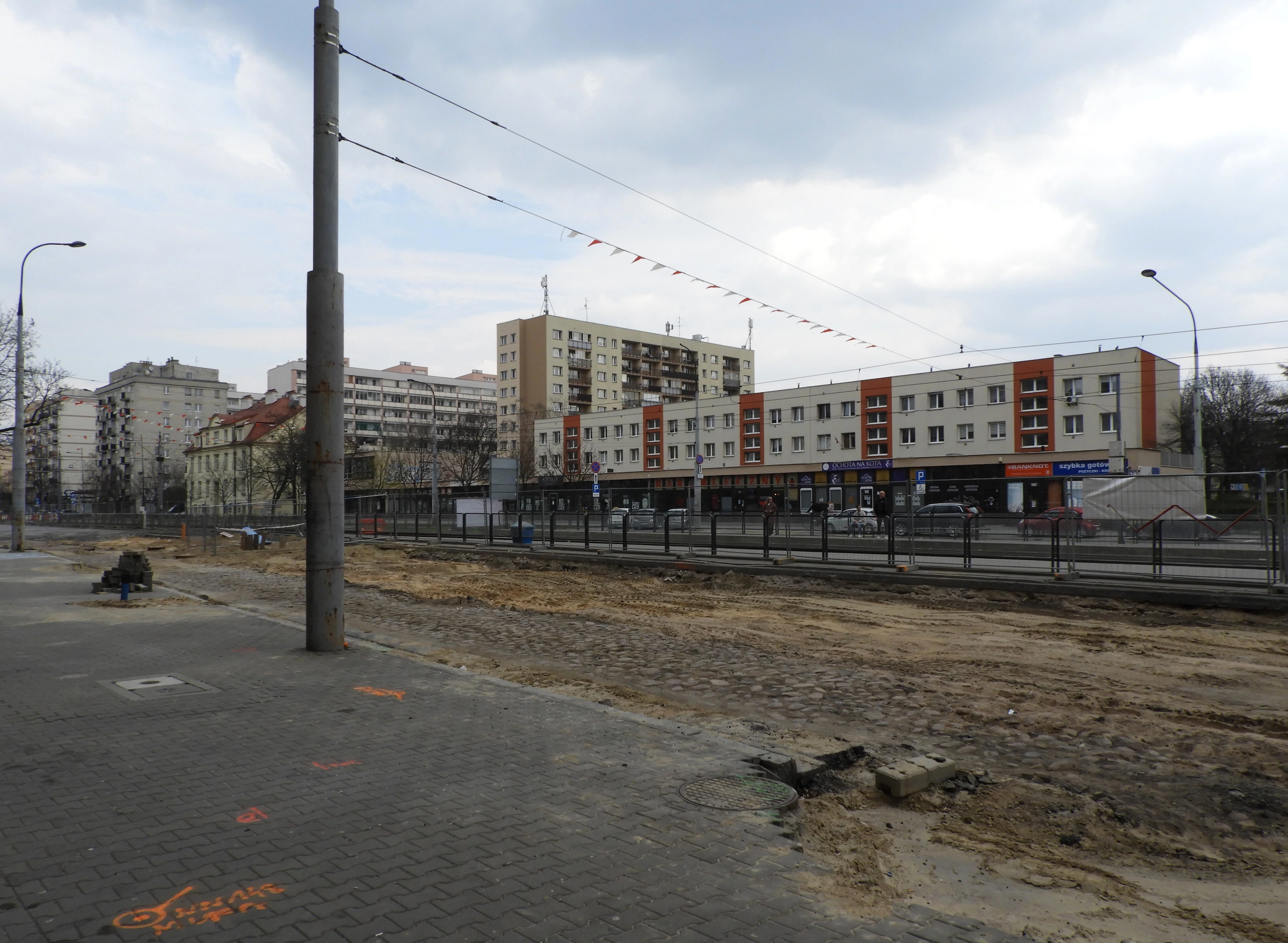 1 pobranie 230 odsłon 6 średnia ocen Poprzednie i następne zdjęcia Krzysiek99 Obiekty widoczne na zdjęciu ul. Grójecka więcej zdjęć (355) Dawniej: Aleja Grójecka Ulica Grójecka to główna ulica warszawskiej dzielnicy Ochota, biegnąca od Placu Artura Zawiszy do wiaduktu linii kolei radomskiej na granicy z dzielnicą Włochy, gdzie przechodzi w al. Krakowską. Historia Ulica Grójecka powstała na miejscu starego traktu, uregulowanego w latach 1818-1823, biegnącego przez wieś Raków oraz miasta Grójec i Radom do Krakowa; jednocześnie obsadzono ją dwoma szpalerami drzew. Okres przedzaborowy Pierwszą zabudowę nowej ulicy stanowiły dwie cegielnie, powstałe przed rokiem 1829. Pierwsza z nich znajdowała się w rozwidleniu Szosy Krakowskiej i Drogi Jerozolimskiej, czyli dzisiejszych Al. Jerozolimskich. Drugą usytuowano u zbiegu z Drogą Królewską, czyli dzisiejszą ul. Niemcewicza; wypada tu powiedzieć o niej słów kilka. Przeprowadzono ją w roku 1768 jako obsadzoną lipami aleję wiodącą od traktu Wolskiego do Zamku Ujazdowskiego; jej przebieg pokrywa się z dzisiejszym ciągiem ulic Prądzyńskiego, Niemcewicza, Nowowiejskiej, Al. Wyzwolenia do Placu Na Rozdrożu. Co prawda w okresie 1881-86 Drogę Królewską przecięły zabudowania Filtrów Lindleya, jednak jej bieg oznaczono tam sadząc aleję platanów. Na wysokości dzisiejszego skrzyżowania z ul. Kaliską wzniesiono murowaną karczmę, zwaną Ochota; od niej pochodzi nazwa powstałej nieco później osady, potem wsi i wreszcie dzielnicy. Wieś Ochota ciągnęła się aż po linię ulicy Opaczewskiej, tworzącej wraz z dzisiejszą ulicą Banacha znany już w średniowieczu trakt z Błonia do Czerska. Okres Zaboru Rosyjskiego W roku 1818 na dzisiejszym Pl. Zawiszy wzniesiono okrągłe pawilony Rogatek Jerozolimskich, które zamknęły perspektywę ulicy w kierunku północnym. Od lat siedemdziesiątych XIX wieku właśnie ten bliski rogatkom odcinek Grójeckiej otrzymał zabudowę, składającą się z niewielkich, parterowych i często drewnianych domów. Parzysta strona ulicy długo nie posiadała wartej wzmianki zabudowy: kilka domów drewnianych wznosiło się w rejonie ul. Spiskiej. W roku 1909 przyłączono do Warszawy odcinek Grójeckiej od Pl. Zawiszy do Niemcewicza; wzniesione krótko potem domy liczyły wyłącznie po cztery piętra i otrzymały bardzo skromną dekoracją fasad, lub w ogóle jej nie posiadały. Przesunięcie granic Warszawy uczyniło z sielskiej wsi Ochoty szybko rozwijające się przedmieście; bliskość miasta oddziaływała już dużo wcześniej - miejskie kamienice powstawały tu już przed rokiem 1901, a wytyczone krótko po tej dacie przecznice Przemyska, Częstochowska i Winnicka zabudowano niemal natychmiast. Owe czynszowe domy budowane pod wynajem cechował niewielki metraż mieszkań i ich niski standard; ich mieszkańcami byli niezamożni robotnicy, rzemieślnicy i drobni kupcy. Tymczasem Warszawa rozwijała się, zagarniając coraz większy teren: w roku 1916 przyłączono do miasta wieś Ochotę. Okres Drugiej Rzeczpospolitej W roku 1919 przyłączono pozostały odcinek Grójeckiej, aż po tory Kolei Radomskiej. W roku 1921 Grójecką pojechał pierwszy tramwaj linii 7 : kursował z ul. Radzymińskiej do zbiegu Grójeckiej i Opaczewskiej; w roku 1923 linię wydłużono do Okęcia. U zbiegu z Opaczewską od roku 1917 działało targowisko warzyw i owoców, zwane potocznie Zieleniakiem; w latach dwudziestych plac wybrukowano i skanalizowano, na jego tyłach zaś wybudowano w latach 1925-27 gmach Szkół Powszechnych 188 i 189, projektowany przez Franciszka Szaniora. Grójecka była wówczas ulicą brukowaną polnym kamieniem, oświetloną latarniami znajdującymi się na trakcyjnych słupach tramwajowych marki Siemens, montowanych w Warszawie od roku 1908. Coraz większa liczba mieszkańców Ochoty pociągnęła za sobą konieczność wzniesienia dużej świątyni, mogącej ich pomieścić; w roku 1911 na placu podarowanym przez Jana Grądzkę rozpoczęto prace przy budowie kościoła Niepokalanego Poczęcia Najświętszej Maryi Panny, zaprojektowanego przez Oskara Sosnowskiego; w miejscu gdzie znajduje się dziś dom parafialny i mieszkania duszpasterzy wzniesiono drewnianą dzwonnicę nakrytą dwustopniowym, czterospadowym dachem. Nieco skośne względem ulicy usytuowanie bryły kościoła jest śladem niezrealizowanego zamierzenia urbanistycznego: jej widok miał zamykać perspektywę ul. Uniwersyteckiej, którą planowano wydłużyć przez teren Pola Mokotowskiego aż do ulicy Madalińskiego na Mokotowie. Brak funduszy sprawił, że budowa kościoła ciągnęła się blisko 14 lat; świątyni nigdy też nie ukończono - zabrakło planowanego w projekcie hełmu wieńczącego wieżę, nakrytą dziś prowizorycznie płaskim, czterospadowym daszkiem. Mimo to kościół Niepokalanego Poczęcia jest najwybitniejszym w Polsce dziełem modernizmu bazującego na formach historycznych. We wnętrzu warto zobaczyć Kaplicę Pana Jezusa Ukrzyżowanego, wraz z przedsoborowym eucharystycznym ołtarzem i umieszczonym tu wtórnie krucyfiksem z XVII wieku. W roku 1923 utworzono przed kościołem Plac Gabriela Narutowicza, wraz z otaczającymi go półkoliście ulicami Akademicką, Maurycego Mochnackiego i Józefa Mianowskiego; w latach 1923-30 przy ul. Akademickiej według projektu Kazimierza Tołłoczki wzniesiono ogromny akademik, Dom Mieszkalny Centrali Akademickiej Bratniej Pomocy. Równolegle na samym placu utworzono pętlę tramwajową, gdzie kończyły trasę linie 6, 17, 22 i 25. Lata dwudzieste i trzydzieste przyniosły budowę licznych domów spółdzielczych, oraz - szczególnie pod koniec trzeciej dekady - domów dochodowych. W ich parterowe pomieszczenia zajmowały niewielkie sklepiki, zaś jedyną placówką o aspiracjach kulturotwórczych było Kino "Oaza", działające w latach 1929-38 u zbiegu z Radomską. Pod nr. 27 w latach 1935-36 według projektu Romana Feliński