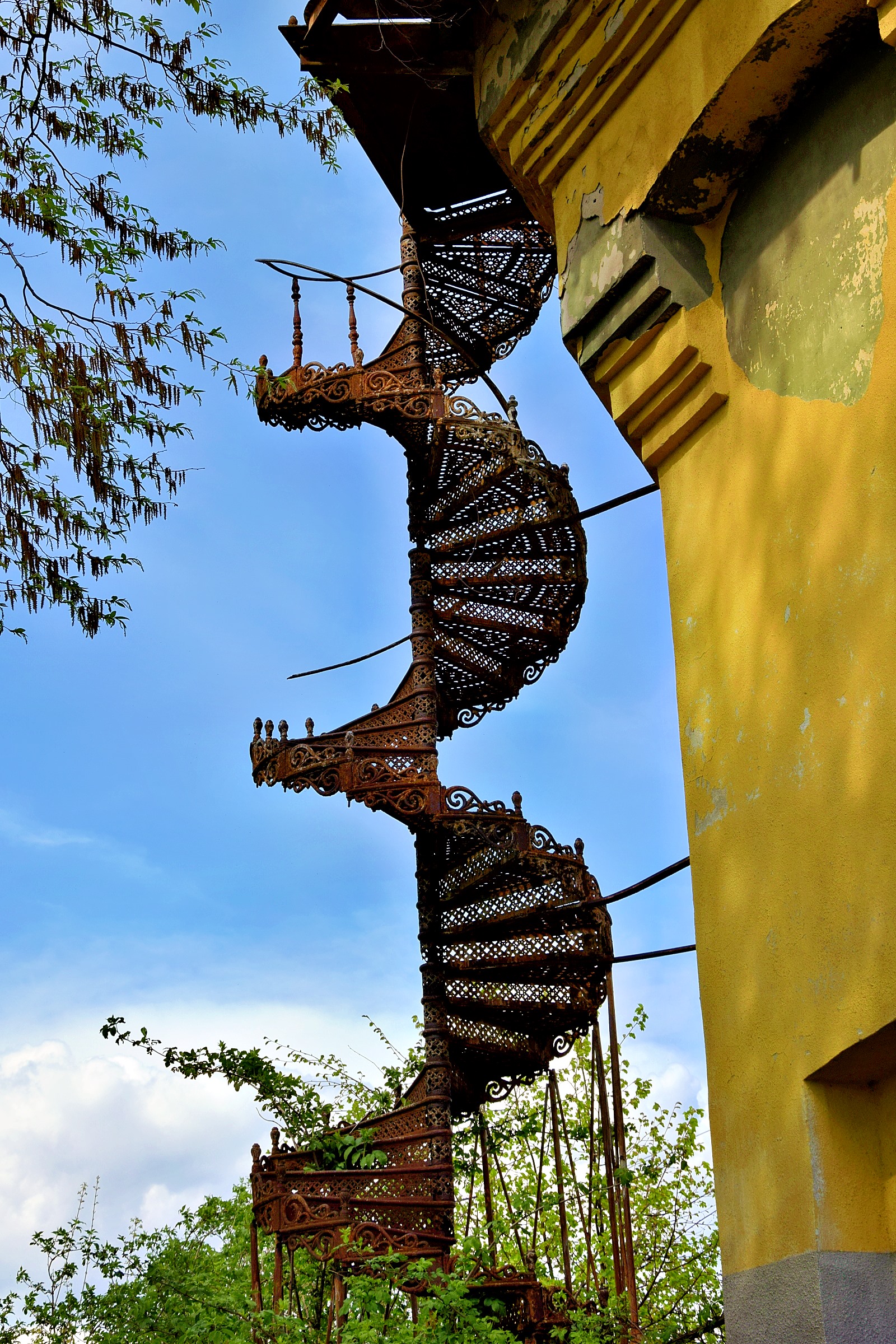 21 kwietnia 2025 , Wieża ciśnień stacji kolejowej Sadurki - żeliwne, kręte schody. |