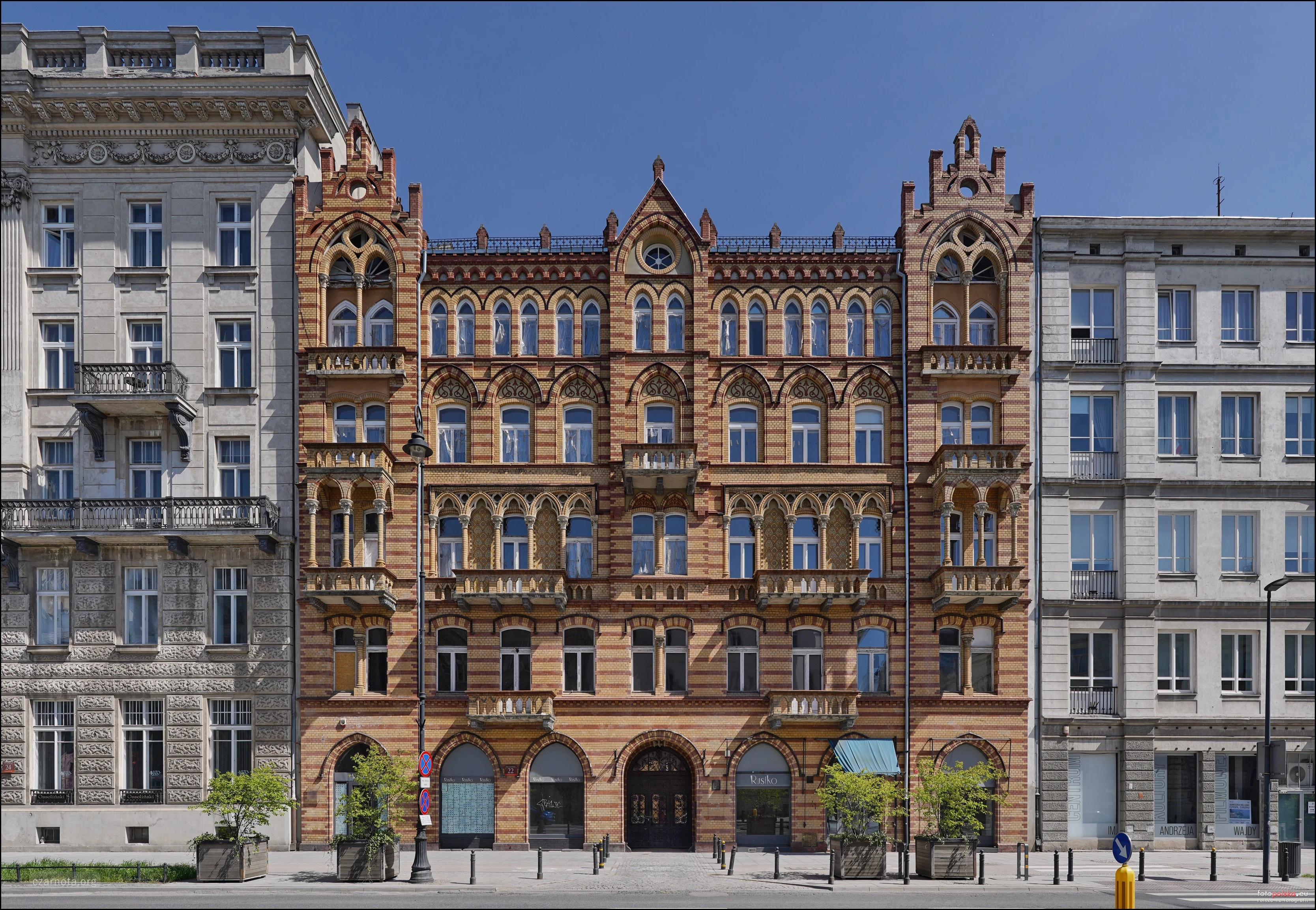 1 pobranie 259 odsłon 6 średnia ocen Poprzednie i następne zdjęcia Maciej Czarnota Obiekty widoczne na zdjęciu Aleje Ujazdowskie 22 więcej zdjęć (17) Architekt: Józef Pius Dziekoński Zbudowano: 1890-1900 Dawniej: Kamienica Władysława Ławrynowicza, Al. Ujazdowskie 34 Zabytek: 752 z 01-07-1965 Kamienica Władysława Ławrynowicza albo Kamienica Portera jest to neogotycka kamienica położona przy Alejach Ujazdowskich 22. Dziś kamienica jest siedzibą Polskiego Towarzystwa Lekarskiego i Naczelnej Izby Pielęgniarek i Położnych. Fasada wyłożona jest czerwono-żółtą cegłą ceramiczną z zakładów Granzowa. Ciekawą częścią całości jest sklepione krzyżowo przejście na podwórze zagrodzone ręcznie kutą kratą z zachowanym do dzisiaj podpisem zakładu, w którym została wykonana. ul. Aleje Ujazdowskie więcej zdjęć (4528) Dawniej: Lindenallee, Siegesstrasse, Aleja Stalina, Aleja Belwederska W latach 1724-1731 z polecenia króla Augusta II, wytyczona została tzw. Droga Kalwaryjska prowadząca od dzisiejszego Placu Trzech Krzyży do Grobu Chrystusa niedaleko Zamku Ujazdowskiego, stając się zaczątkiem dzisiejszych Alej. Było to założenie ostentacyjnie dewocyjne, wzdłuż drogi krzyżowej wzniesiono 28 kaplic. Religijna wymowa tego szlaku uległa stopniowemu zatarciu, tak, że w 1766 był już częścią Traktu Królewskiego jako Aleja Belwederska, prowadząca do Belwederu. W roku 1827 powstała Dolina Szwajcarska, szybko stając się popularnym miejscem spotkań i imprez masowych. W 1857 przy ulicy zapalono pierwsze latarnie gazowe, a w 1879 rozpoczęto kanalizowanie. Druga połowa XIX wieku to początek zabudowy willowej i pałacowej w Alejach - powstały liczne siedziby arystokracji i przemysłowców. Po I wojnie światowej znalazły tu siedziby ambasady i poselstwa. W czasie II wojny światowej w ramach planu Pabsta umiejscowiono tu dzielnicę niemiecką, a Aleje przemianowane zostały na aleję Lipową (Lindenallee), a później na aleję Zwycięstwa (Siegenallee). W 1944 zabudowa ulicy uległa zniszczeniom w czasie powstania warszawskiego i odbudowa trwała aż do 1955. W okresie stalinowskim przemianowana na Aleję Stalina i starą nazwę przywrócono dopiero po śmierci Józefa Stalina. Odbudowa Alej jednak nie była dokładna - powstało osiedle Latawiec i wiele budynków w rejonie ulicy Koszykowej i Placu na Rozdrożu przestało istnieć. Także przebicie Trasy Łazienkowskiej zmieniło wygląd ulicy - miejsce po dawnym dworze książąt mazowieckich na Jazdowie znalazło się w osi jezdni i przestało istnieć. Wikipedia |