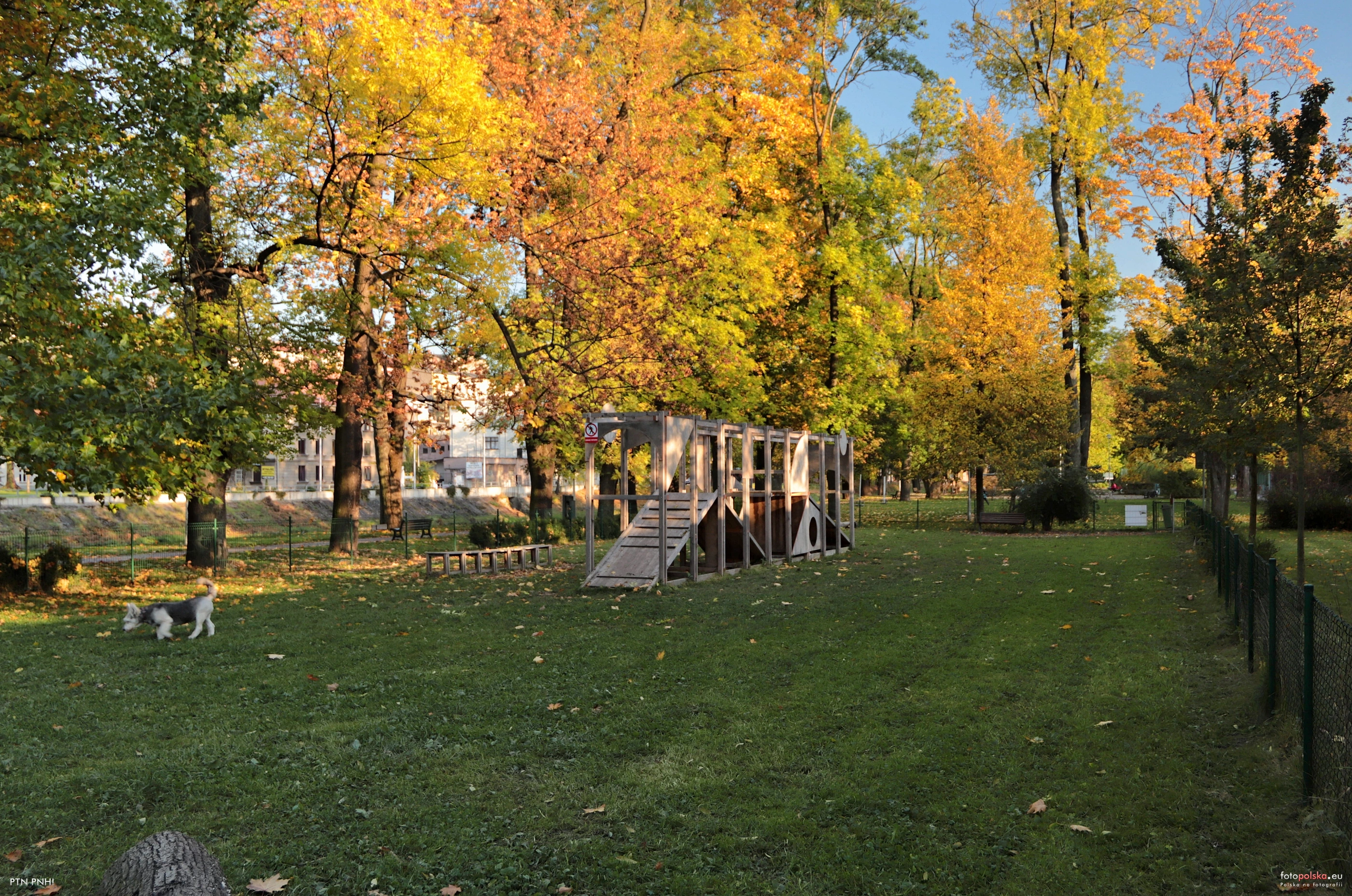 12 października 2022 , Ogólny widok na wybieg dla psów. Widoczna drewniana konstrukcjia zostala zbudowana ramach warsztatów projektowych "Mood for wood". Studenci i młodzi projektanci z Polski, Czech, Węgier i Słowacji projektowali oraz budowali instalacje/obiekty w przestrzeni dla mieszkańców Cieszyna i Czeskiego Cieszyna. Ta drewnianą konstrukcjię sluźyla jako tór prześkód dla piesków.Skomentuj zdjęcie |