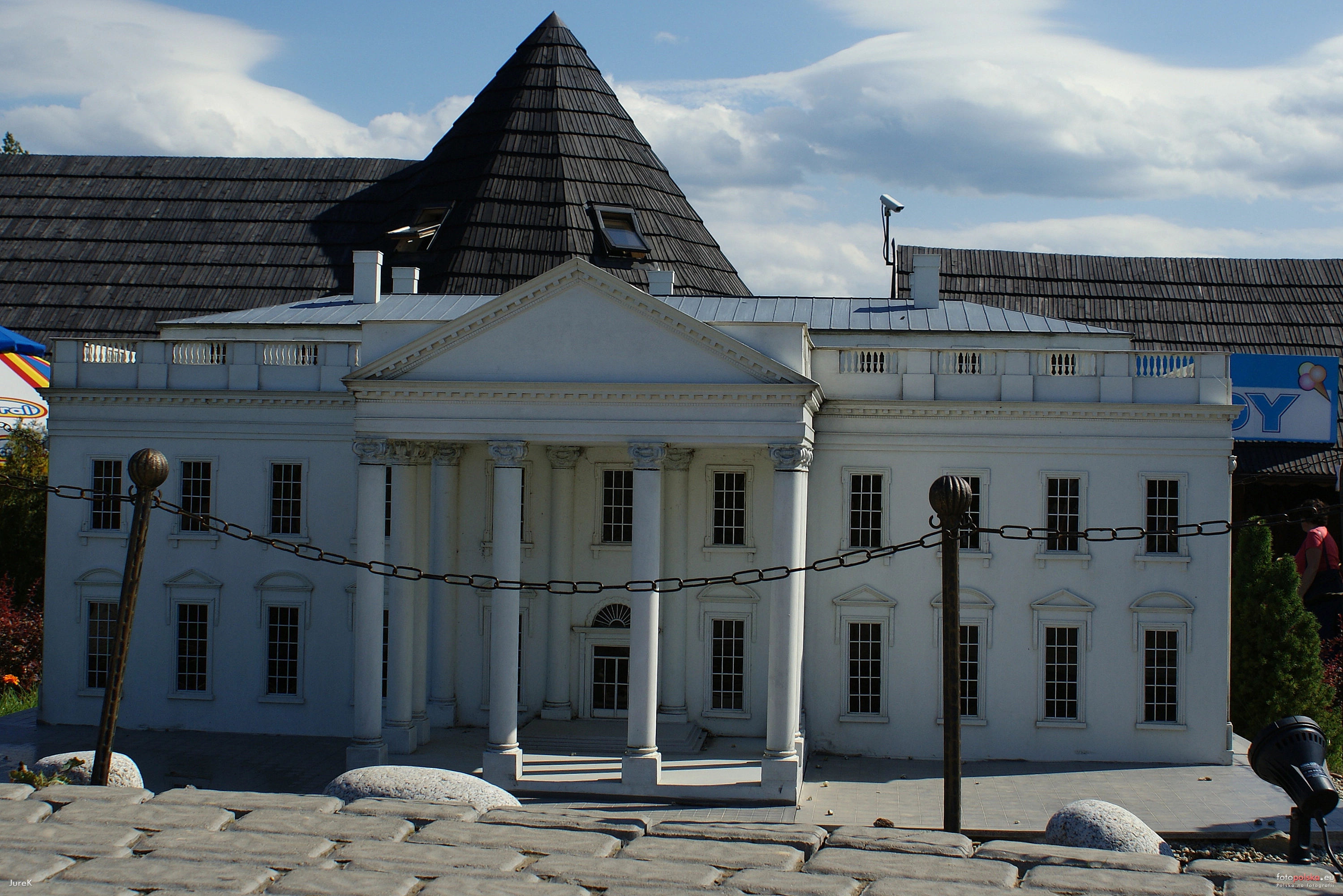 Biały Dom i Statua Wolności - miniatura więcej zdjęć (5) Park Miniatur „Świat Marzeń” więcej zdjęć (22) Zbudowano: 2007-05 Park Miniatur „Świat Marzeń” zlokalizowany jest w pobliżu drogi krajowej nr 52. Znajduje się w nim ponad 50 modeli sławnych obiektów architektonicznych świata, m.in. Akropol, Koloseum, Krzywa Wieża, Bazylika św. Piotra, Statua Wolności, Mur Chiński, Wieża Eiffla, Łuk Triumfalny, Big Ben, Sfinks, Biały Dom. Miniatury rozmieszczone są na powierzchni 45 tys. m kw. Większość miniatur została zbudowana w skali 1-25. Zastosowanie ujednoliconego zmniejszenia pozwala na porównanie proporcji poszczególnych obiektów. Wyjątek stanowi Bazylika św. Piotra w Rzymie, która została wykonana w skali 1-15 oraz nowo powstały Kompleks Wenecki wykonany w skali 1-10.