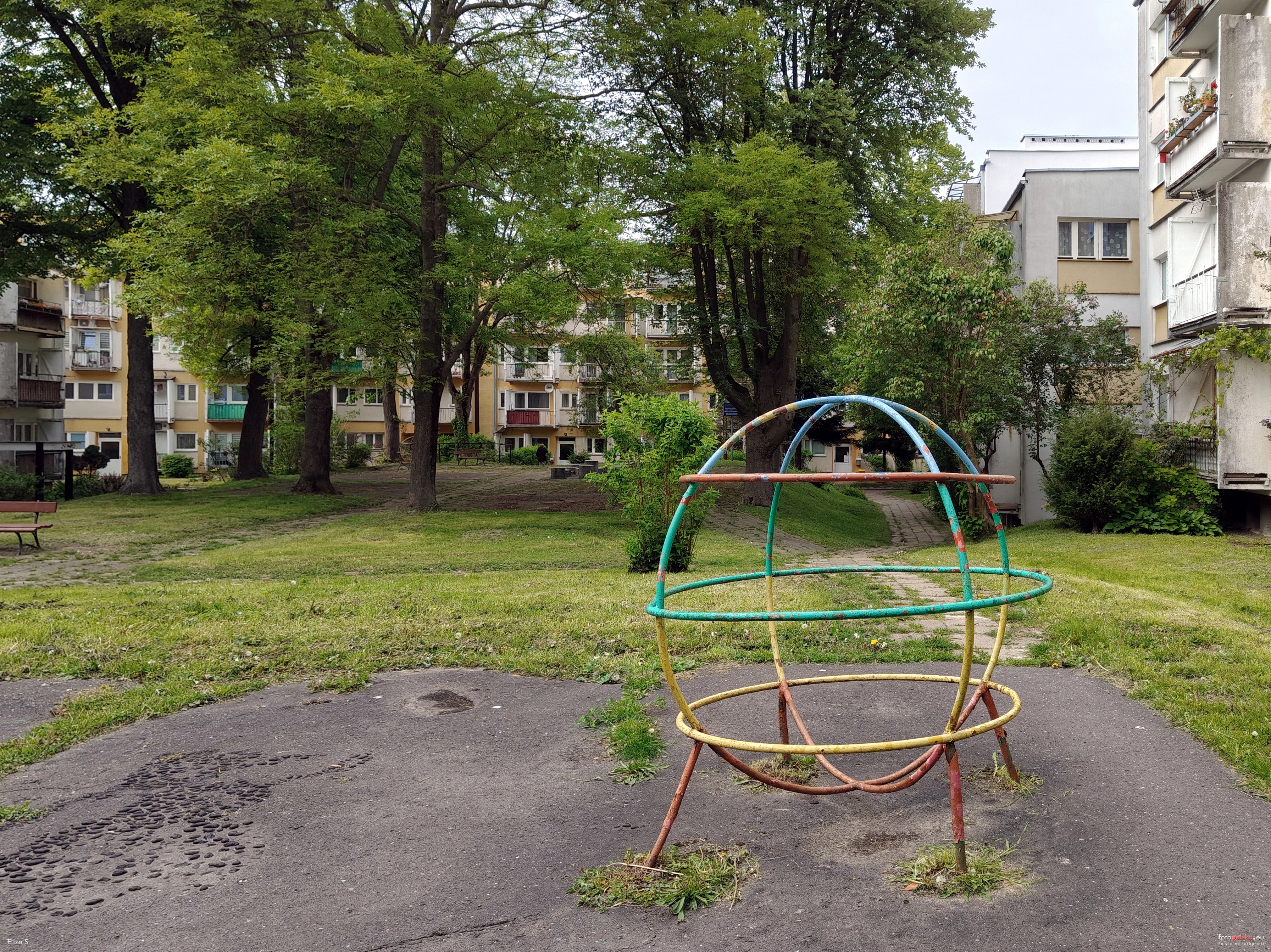 11 maja 2025 , Plac zabaw między blokami mieszkalnymi ul. Balladyny 18 i 16 (z prawej). Kultowy globus do zabawy dla dzieci.Skomentuj zdjęcie |