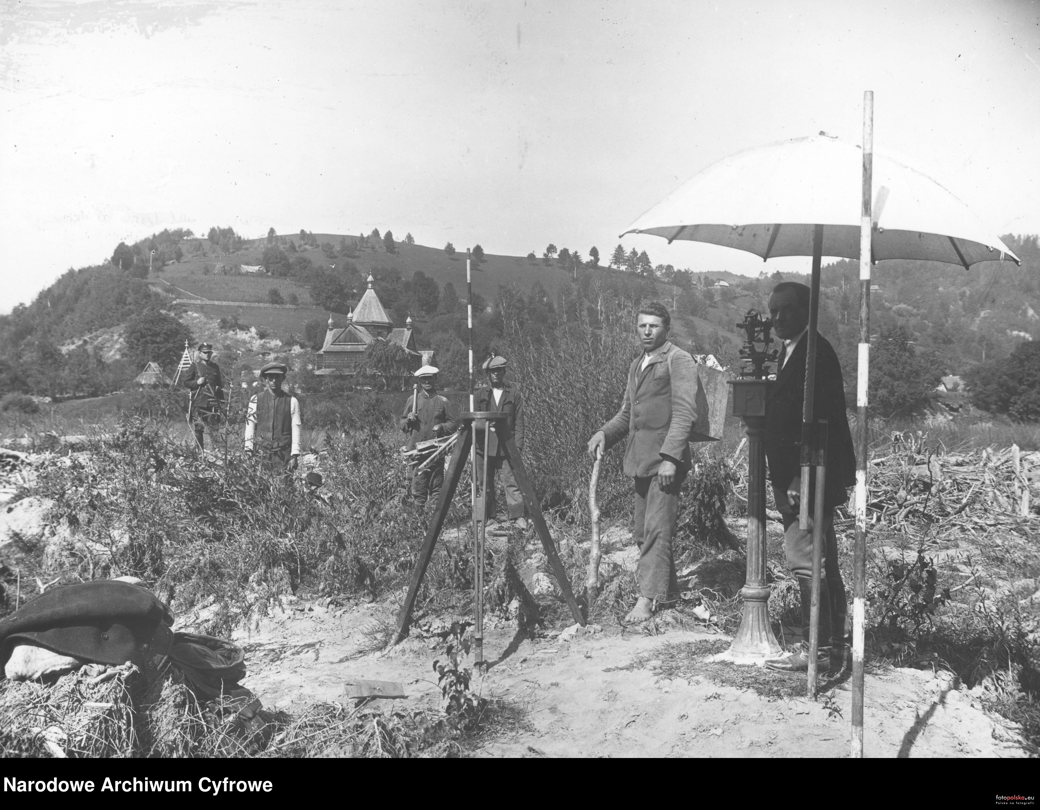 1929 , Wyznaczanie granicy polsko-rumuńskiej nad Czeremoszem, w oddali cerkiew św. Archanioła Michała we wsi Roztoki (wówczas powiat kosowski, obecnie obwód iwanofrankiwskiSkomentuj zdjęcie