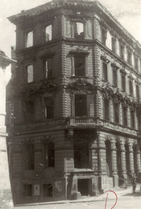 lipiec 1946 , Narożnik kamienicy na Krakowskim Przedmieściu 60 na krótko przed rozbiórką murów do wysokości parteru.Skomentuj zdjęcie |