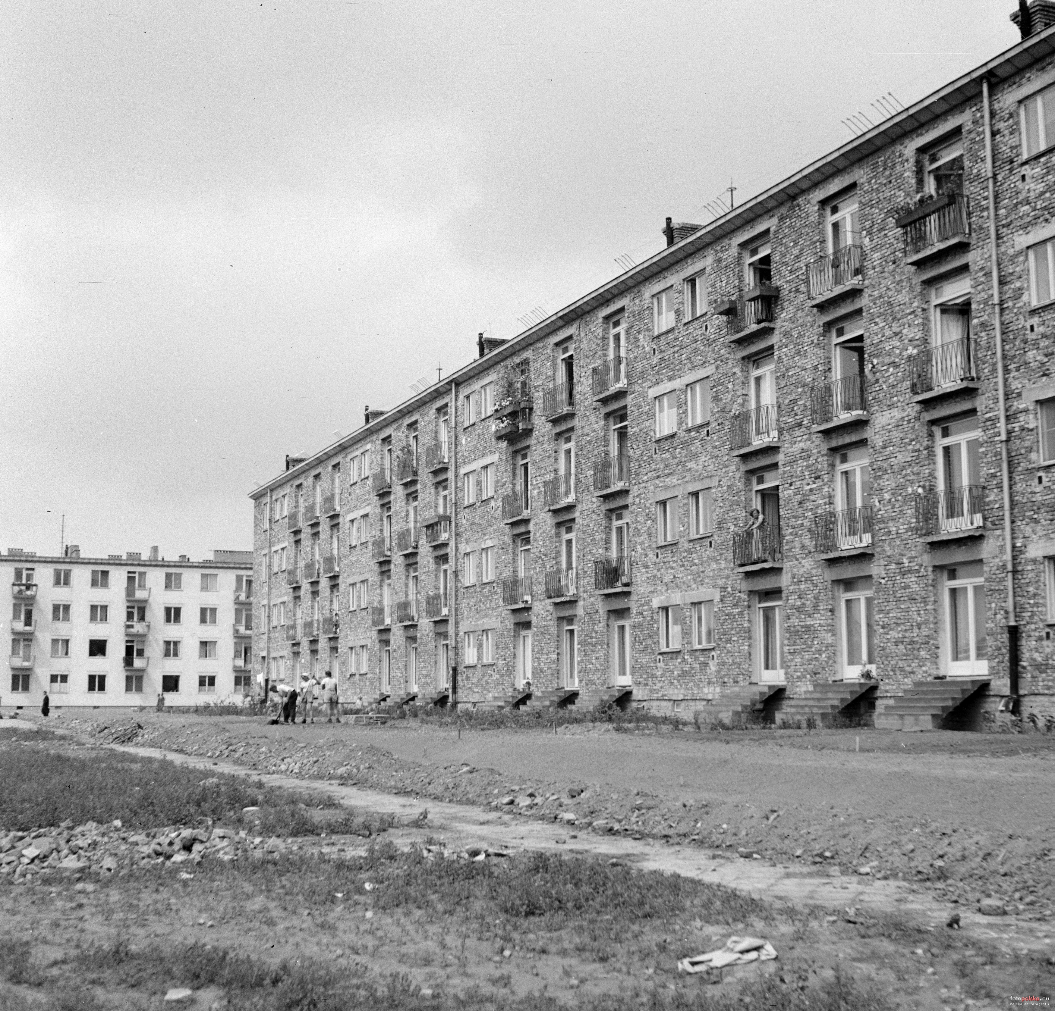 1951 , Budowa osiedli Warszawskiej Spółdzielni Mieszkaniowej na Mokotowie w Warszawie.Skomentuj zdjęcie