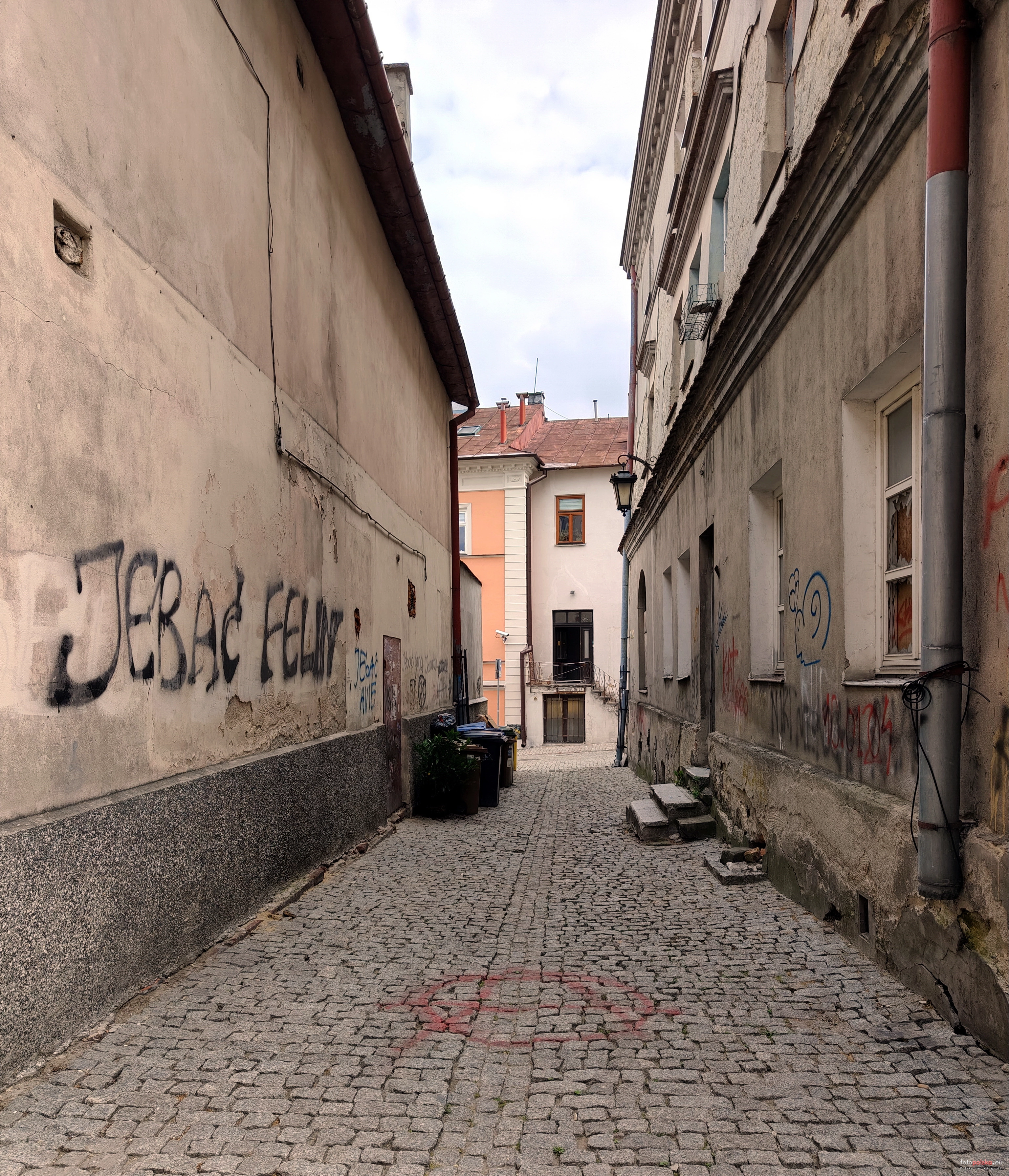22 czerwca 2025 , Kamienica Olejna 8 (z prawej) w Dzielnicy Stare Miasto, widok z ul. Szambelańskiej w kierunku ul. Olejnej.Skomentuj zdjęcie |