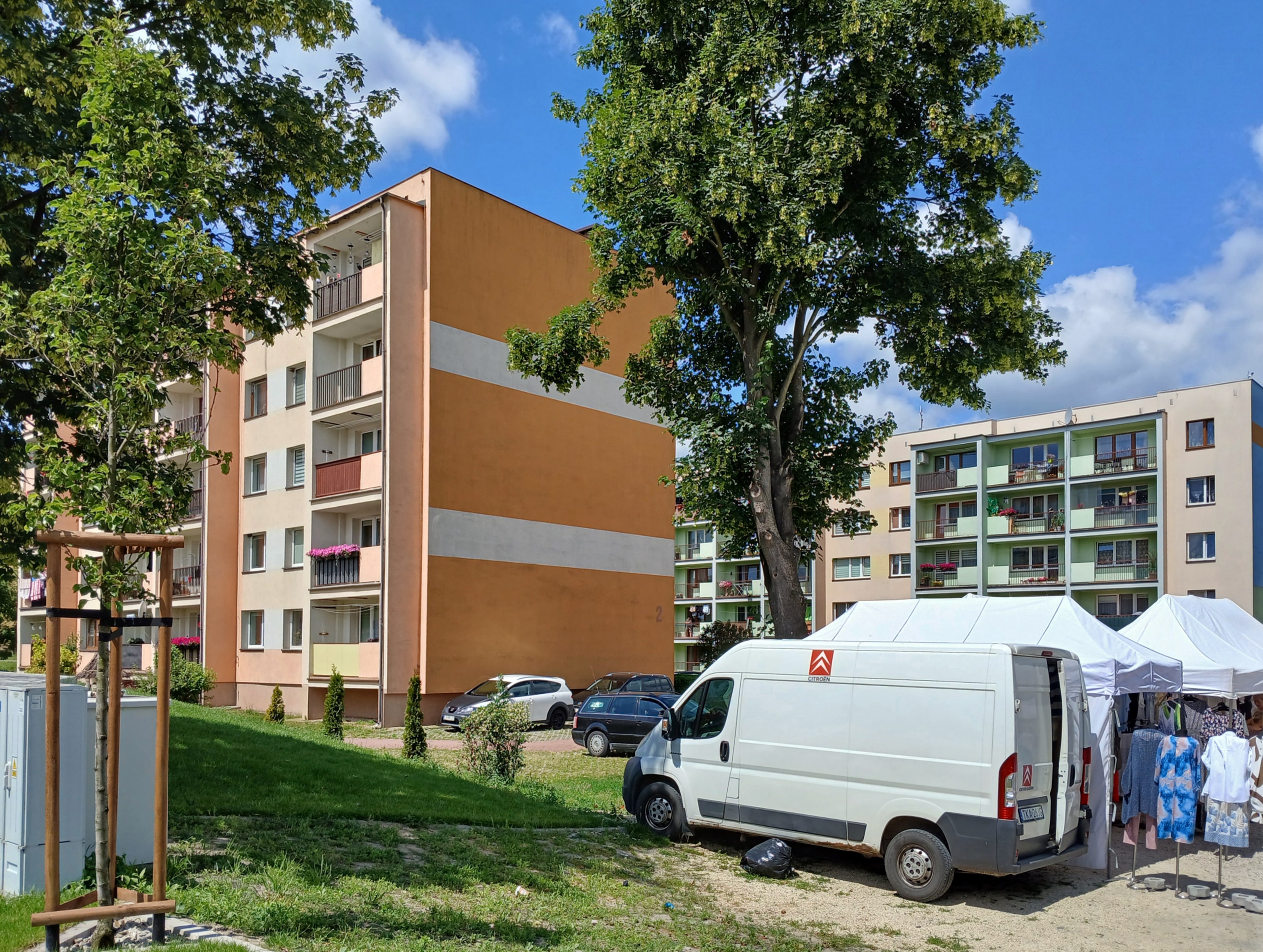 28 czerwca 2025 , Fragment targowiska u zbiegu ulic: Leśna i Wyszyńskiego. Częściowo widoczne bloki nr 2 i 3, przy Armii Krajowej.Skomentuj zdjęcie |