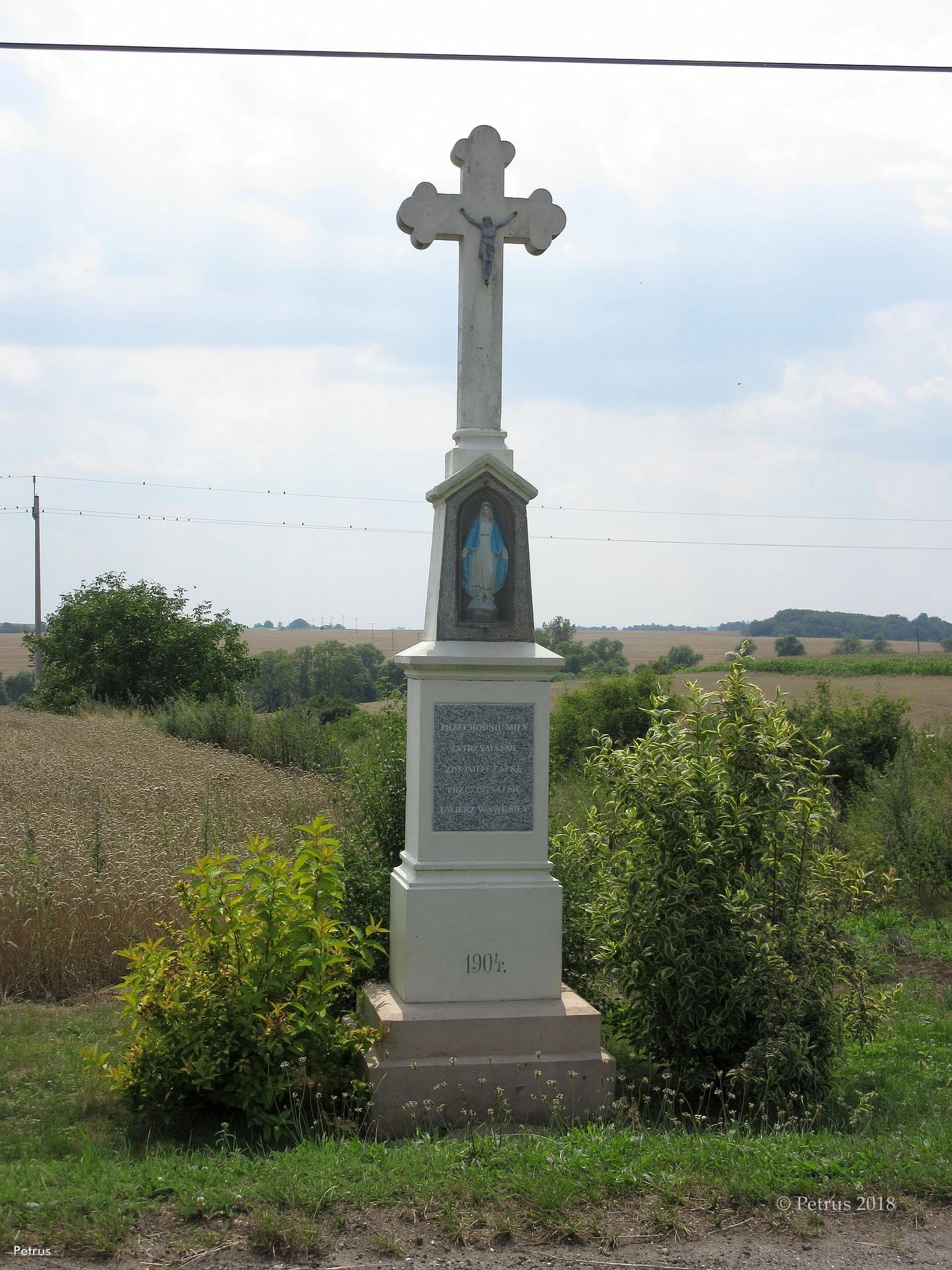 lipiec 2018 , Krzyż na wschodzie wioski. Za nim polna droga biegnąca do nieistniejącego młyna wodnegoSkomentuj zdjęcie |