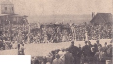 14 września 1930 , Poświęcenie kamienia węgielnego pod nową świątynię w Dąbrówce Kościelnej. Z lewej strony widoczny prowizoryczny, tymczasowy kościółek drewniany.Skomentuj zdjęcie |