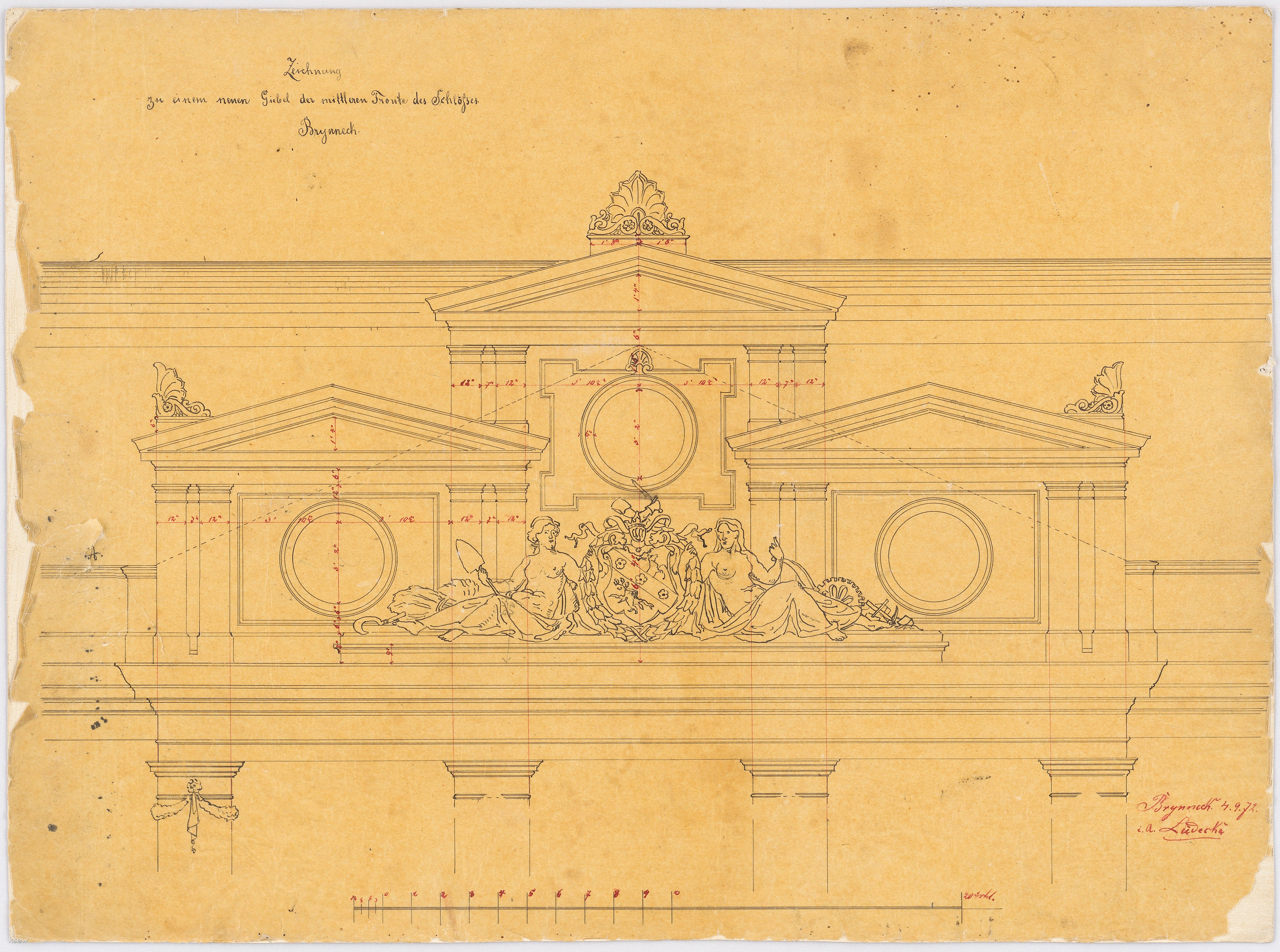 Elewacja centralnego szczytu frontu; rysunek z 4.09.1872