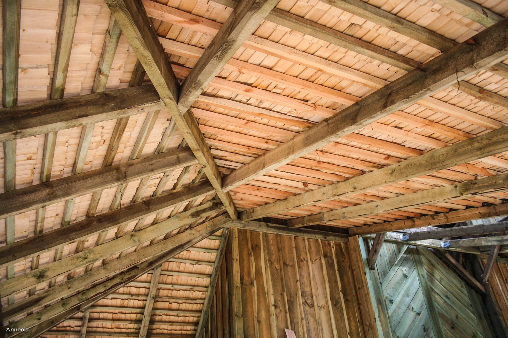11 kwietnia 2009 , Sklepienie podcienia z nowymi gontami.Skomentuj zdjęcie |