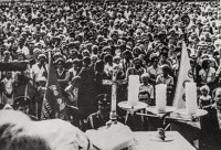 1980 , Ul.3 Maja nr 7. Stadion Miejski MOSIR. Wiec Solidarności.