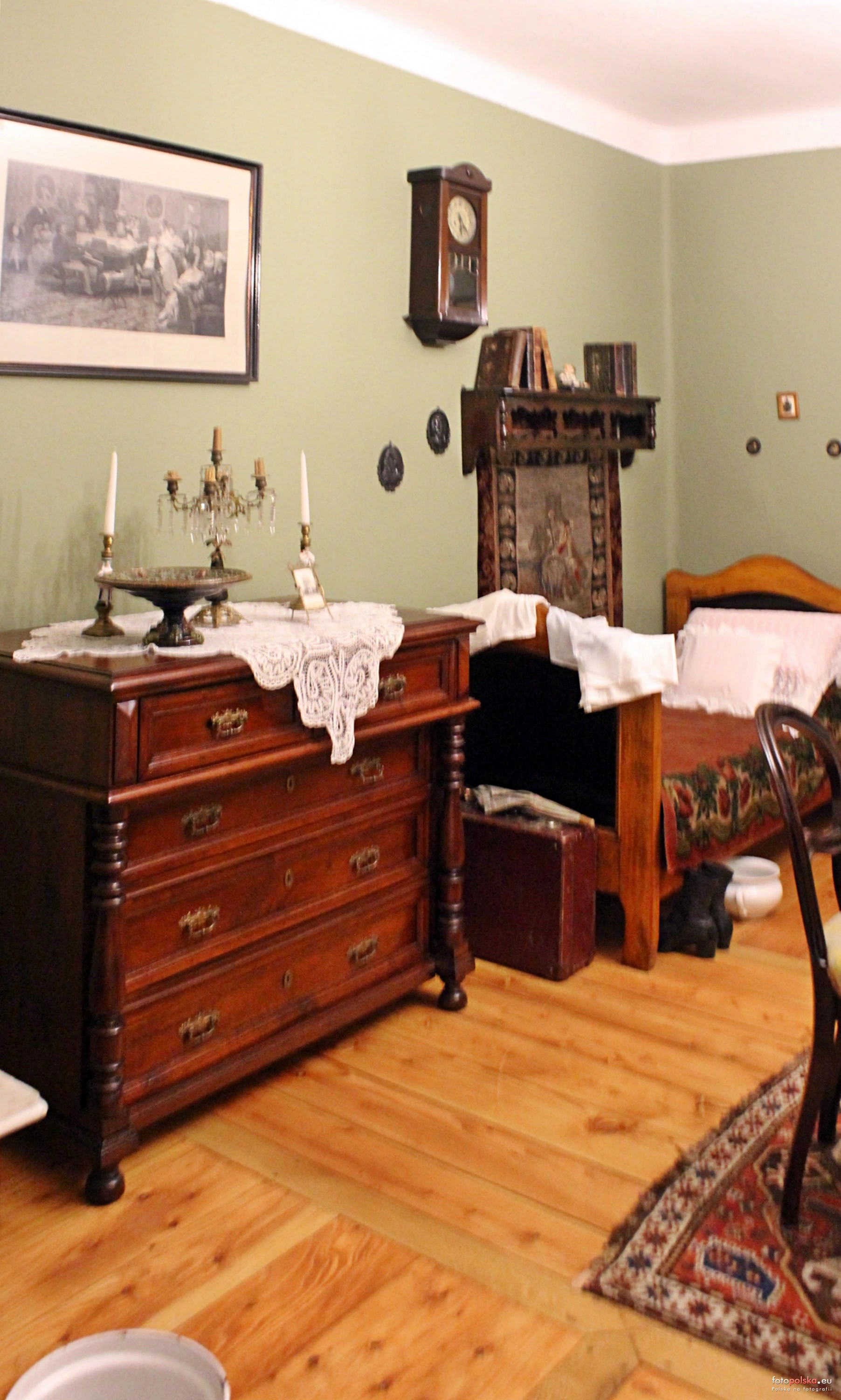 0 pobrań 135 odsłon 0 średnia ocen Poprzednie i następne zdjęcia 4elza Obiekty widoczne na zdjęciu Wnętrza dworu więcej zdjęć (24) Wnętrza zaaranżowano w sposób typowy dla standardu życia średniozamożnej rodziny szlacheckiej z drugiej połowy XIX w. Salon to najbardziej reprezentacyjne pomieszczenie dworu, tutaj przyjmowano oficjalnych gości. Znajdują się tu m.in. dwa komplety mebli w stylu Ludwika Filipa, klasycystyczna komoda, serwantka z naczyniami o funkcji dekoracyjnej i makata buczacka na ścianie. Za salonem znajduje się sypialnia państwa domu. W sypialni dokonywano codziennej podstawowej toalety, tam mieści się też garderoba oraz stolik do robótek kobiecych. W sypialni stoją dwa łóżka małżeńskie, komoda w stylu Ludwika Filipa, eklektyczna szafa odzieżowa i czarno politurowane biurko damskie w stylu Napoleona III. Wyposażenie uzupełniają naczynia nocne oraz ozdobna spluwaczka w kształcie żółwia. Dwór posiadał także bawialnię, czyli pokój kameralnych spotkań rodziny – etykieta dworska nie pozwalała na goszczenie tutaj mniej zaufanych gości. W bawialni najbliżsi członkowie rodziny i jej przyjaciele spędzali wieczory, umilając sobie czas „domowymi koncertami” lub czytaniem. Ściany tego pomieszczenia zdobią ryciny przedstawiające historyczne budowle Rzeczypospolitej. W bawialni znajdują się fortepian ze słynnej warszawskiej manufaktury Józefa Walentego Budynowicza, serwantka z naczyniami, stół z krzesłami oraz piękne secesyjne tremo. Nieodzownym pomieszczeniem dworu był gabinet, czyli miejsce pracy i wypoczynku pana domu oraz zarządcy majątku. Tradycyjnie znajdowało się w nim „panoplium” – ozdobna ekspozycja białej broni, umieszczona na tle kobierca. Wyposażenie tego pomieszczenia stanowi też leżanka w stylu empire oraz sekretarzyk ze zbiorem ksiąg gospodarskich, podręczników, atlasów i literatury pięknej. Dwór z Suchedniowa więcej zdjęć (42) Zbudowano: 1840-1844 Zlikwidowano: 1959 Dwór z Suchedniowa - jeden z najbardziej rozpoznawalnych obiektów w Parku Etnograficznym, przez ponad sto lat stojący przy dzisiejszej ulicy Kieleckiej. W narracjach przewodników, dawnych mieszkańców, opiekunów, czy w artykułach naukowych funkcjonowała data około 1812, jakoby wtedy wybudowano ten obiekt. Jest ona jednak najprawdopodobniej błędna, nie poparta materiałami potwierdzonymi historycznie. Wincenty Tarczyński, poczthalter (listonosz) i ekspedytor stacji pocztowej w Suchedniowie, zakupił ten budynek w 1845 od innego poczthaltera i ekspedytora, Ignacego Strądałło. Potocznie budynek określa się mianem dworu, aczkolwiek pełnił różne funkcje: powstał jako budynek mieszkalny poczthaltera, w którym także mieściła się stacja pocztowa. Po roku 1864 funkcjonowała w budynku "Szkoła dla Panien" zwana popularnie pensją, założona przez Emilię Peck, po 1907 przekształcona w siedmioklasowe gimnazjum polskie bez praw publicznych i kolejno w okresie 1920 -1926 stanowił siedzibę Państwowej Preparandy Nauczycielskiej. Następnie mieściła się w nim szkoła leśna, szkoła powszechna, sąd grodzki, Klub Inteligencji Suchedniowskiej, a po II wojnie światowej - radiowęzeł. Budynek zmieniał właścicieli, przetrwał Powstanie Styczniowe, oraz dwie światowe wojny. W latach 50 - tych stał się własnością Fabryki Urządzeń Transportowych, został spalony zimą 1959. W 1973 przekazano go Wojewódzkiemu Konserwatorowi Zabytków, następnie został rozebrany, a później odrestaurowany w Tokarni w 1978.
