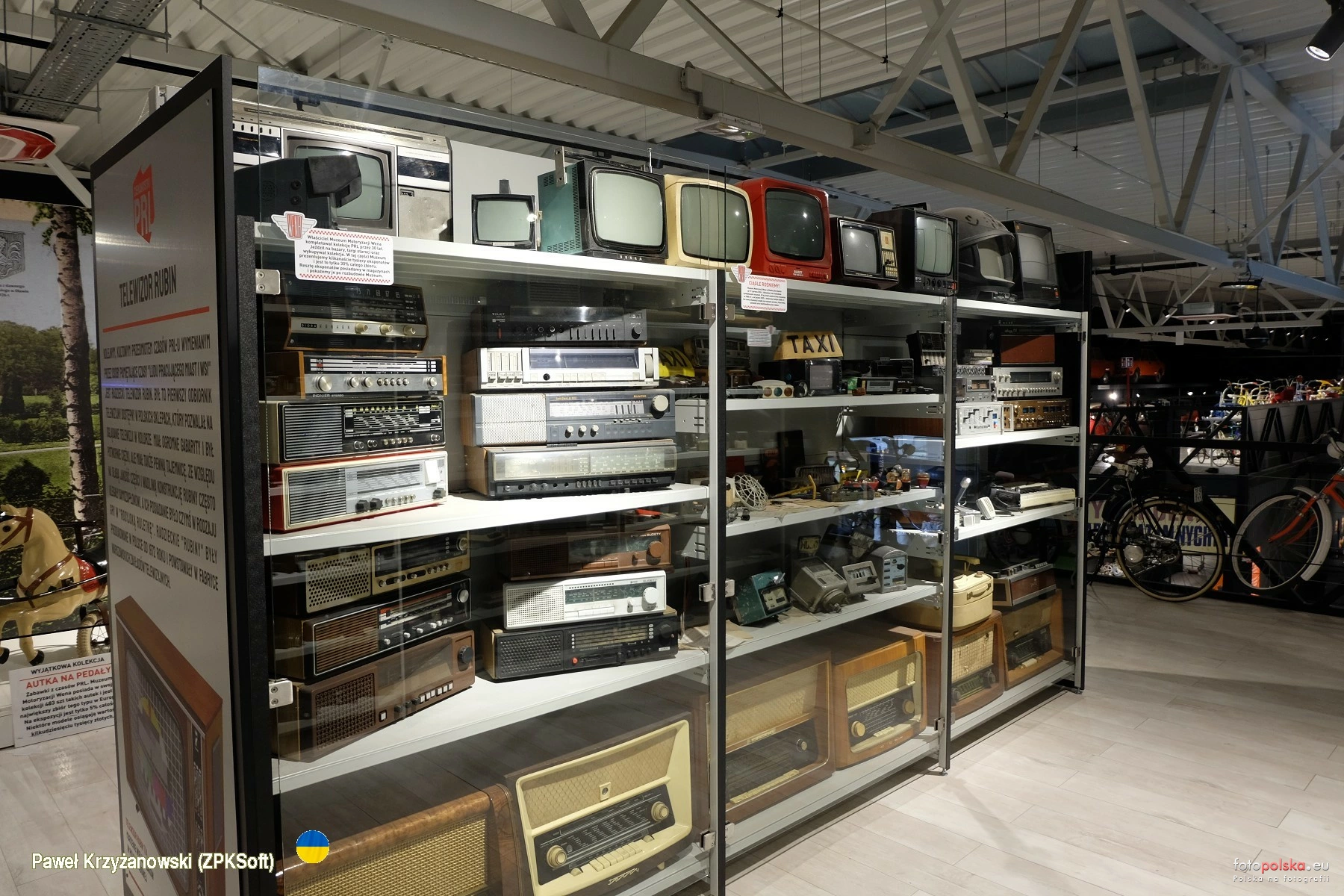 18 czerwca 2025 , Wnętrze muzeum, powstałego w 2024 r. Na zdjęciu fragment ekspozycji. W hali zgromadzono nie tylko auta, są również jednoślady a także wspomnienia z czasów PRL - sprzęty powszechnego użytku oraz opakowania produktów żywnościowych itp.Skomentuj zdjęcie