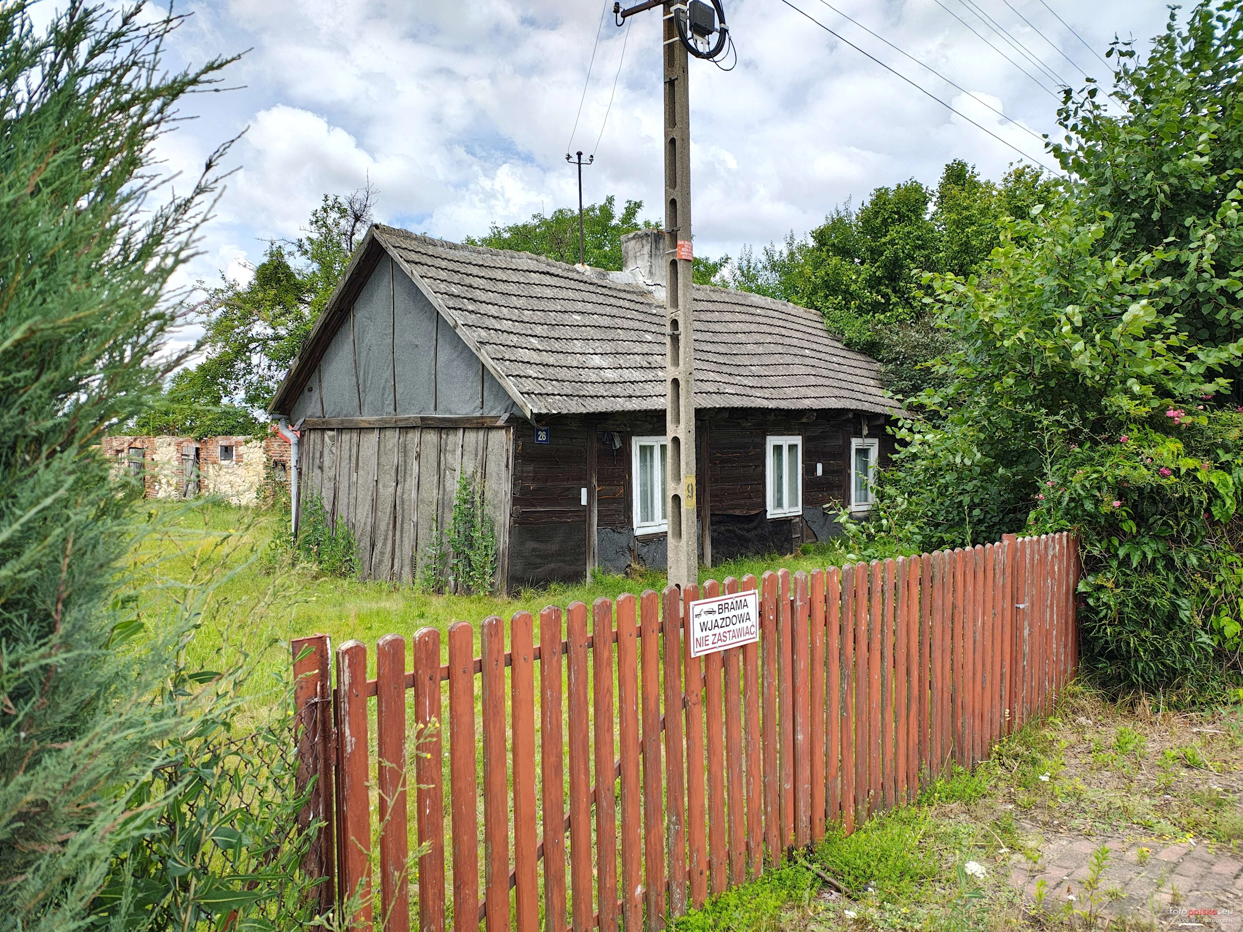 10 lipca 2025 , Dom nr 26 przy ulicy Spacerowej, jeden z dwóch zachowanych drewniaków na jakie natrafiłem przy tej drodze. W głębi po lewej widać murowane zabudowania gospodarcze, pomimo solidniejszego materiału to one są w ruinie, a nie domek w centrum.Skomentuj zdjęcie |
