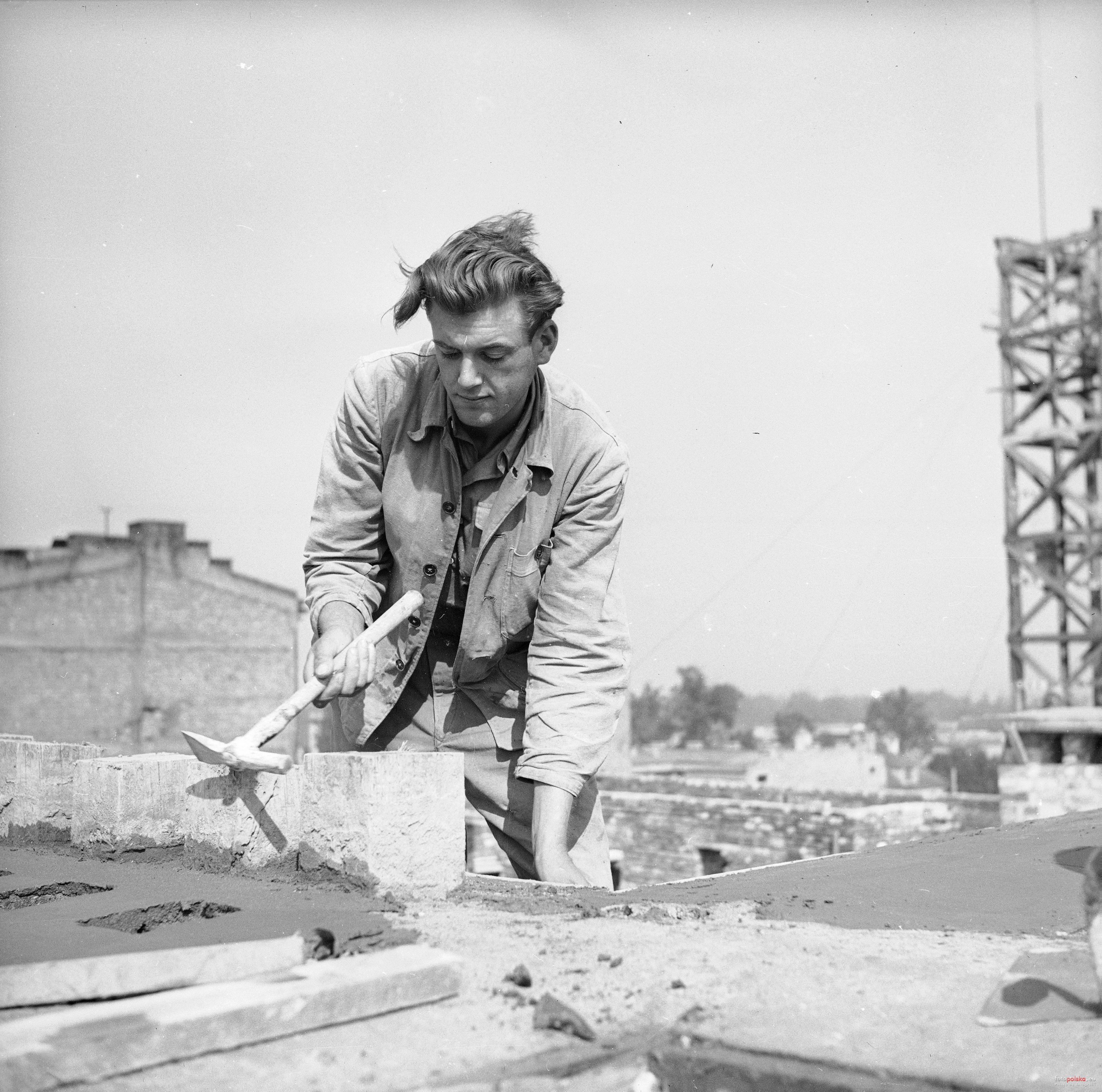 1950 , Żołnierze Ludowego Wojska Polskiego na budowie Wrocławskiego Przedsiębiorstwa Budowlanego.Skomentuj zdjęcie