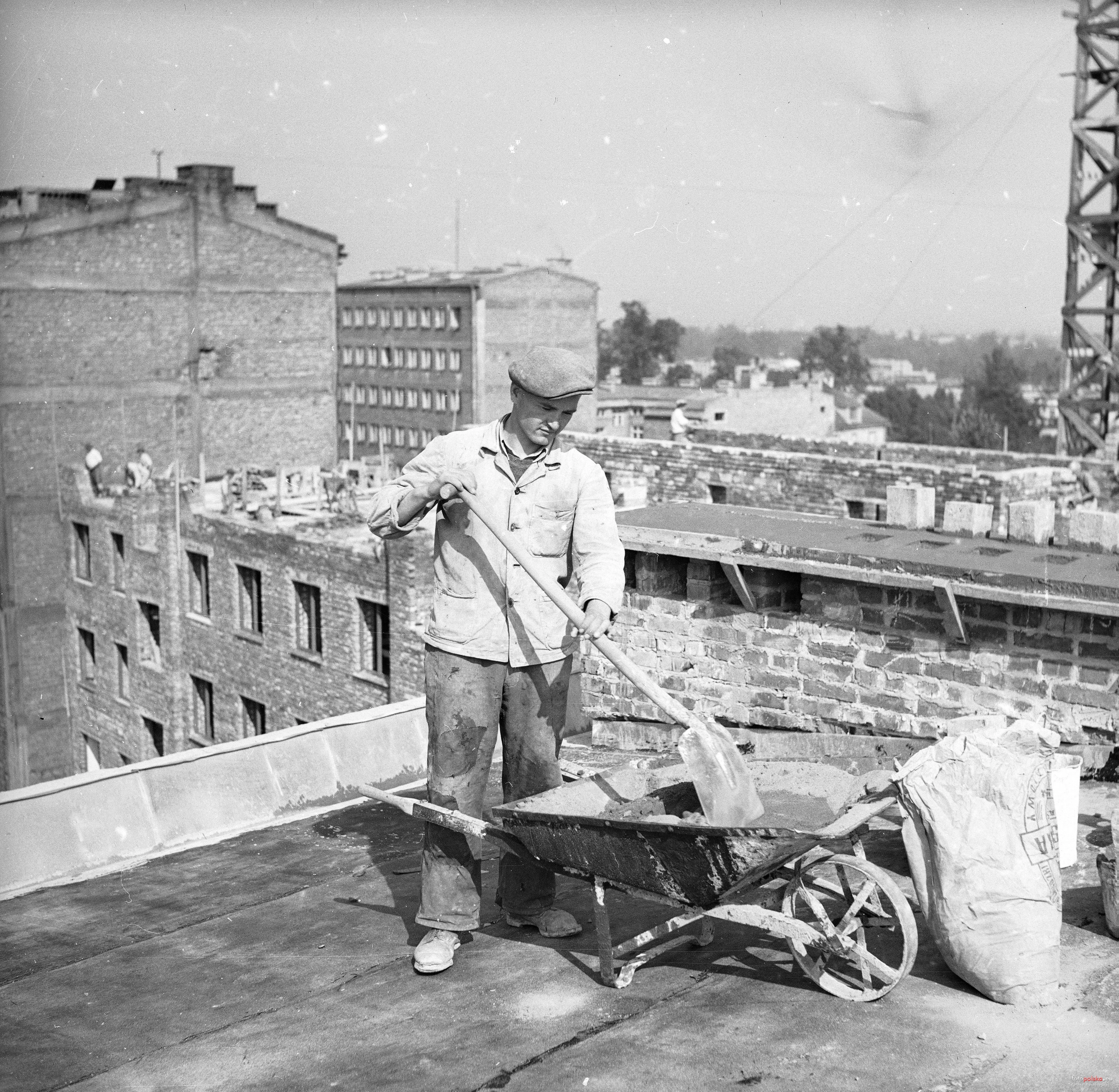 1950 , Żołnierze Ludowego Wojska Polskiego na budowie Wrocławskiego Przedsiębiorstwa Budowlanego - być może, że budowali w Warszawie.Skomentuj zdjęcie