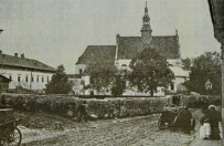 Lata 1930-1935 , Dawna ulica Kielecka z widokiem na kościół parafialny.Skomentuj zdjęcie |