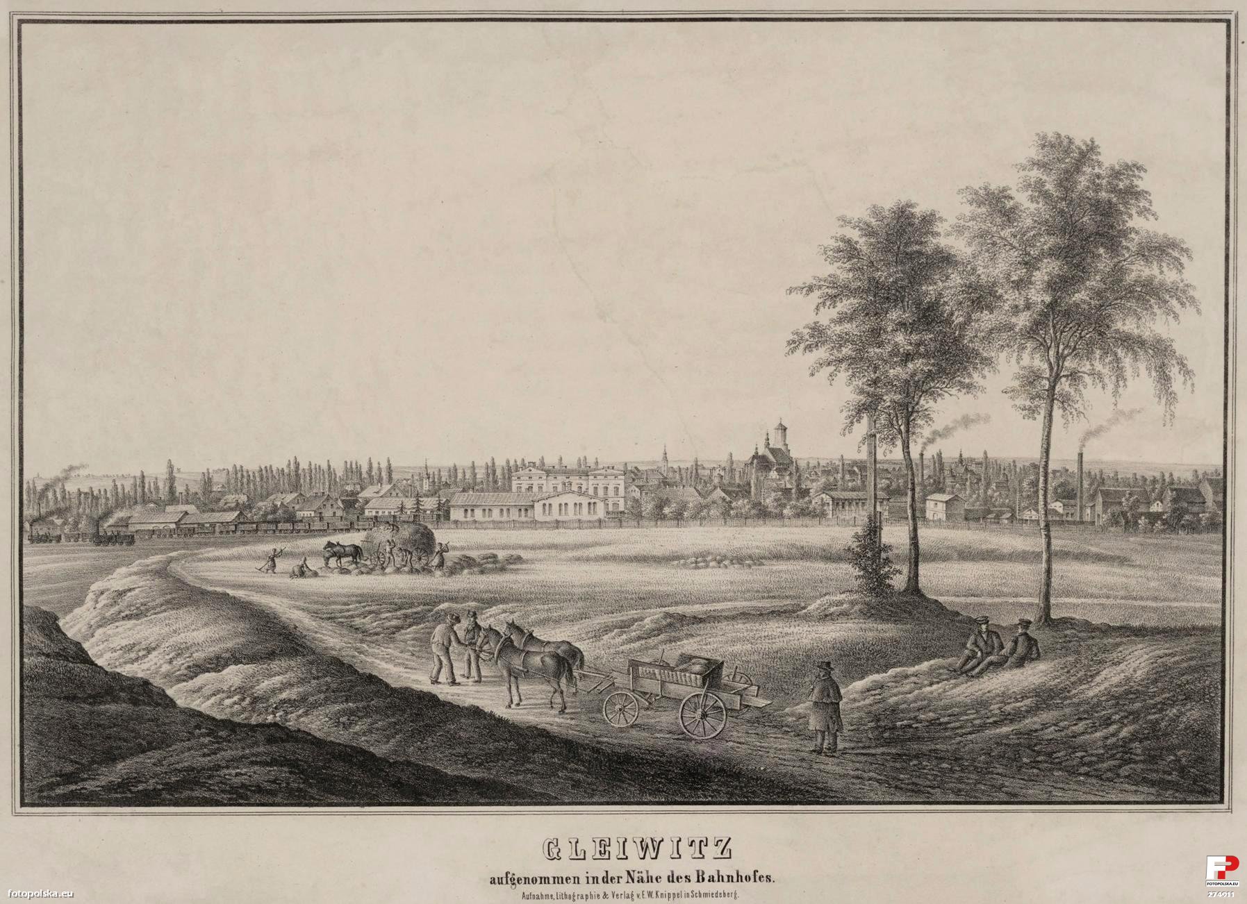 1845 , Panorama Gliwic z okolic dworca kolejowego; litografia, E. W. Knippel ok. 1845 r.Skomentuj zdjęcie |