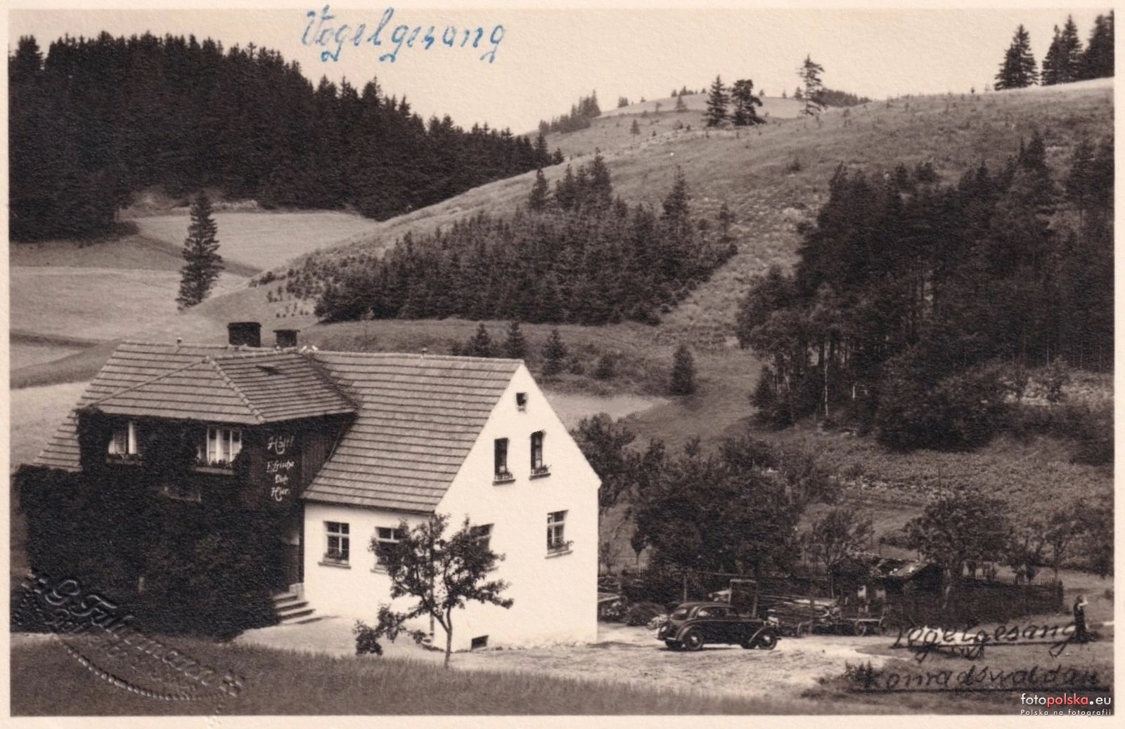 Lata 1935-1940 , Grzędy - Ptasi Śpiew (niem. Vogelgesang). Nieistniejąca gospoda Einkehr am Pechsack, na widokówce z wydawnictwa Gustava Fuhrmanna z ówczesnego Rothenbachu.Skomentuj zdjęcie |