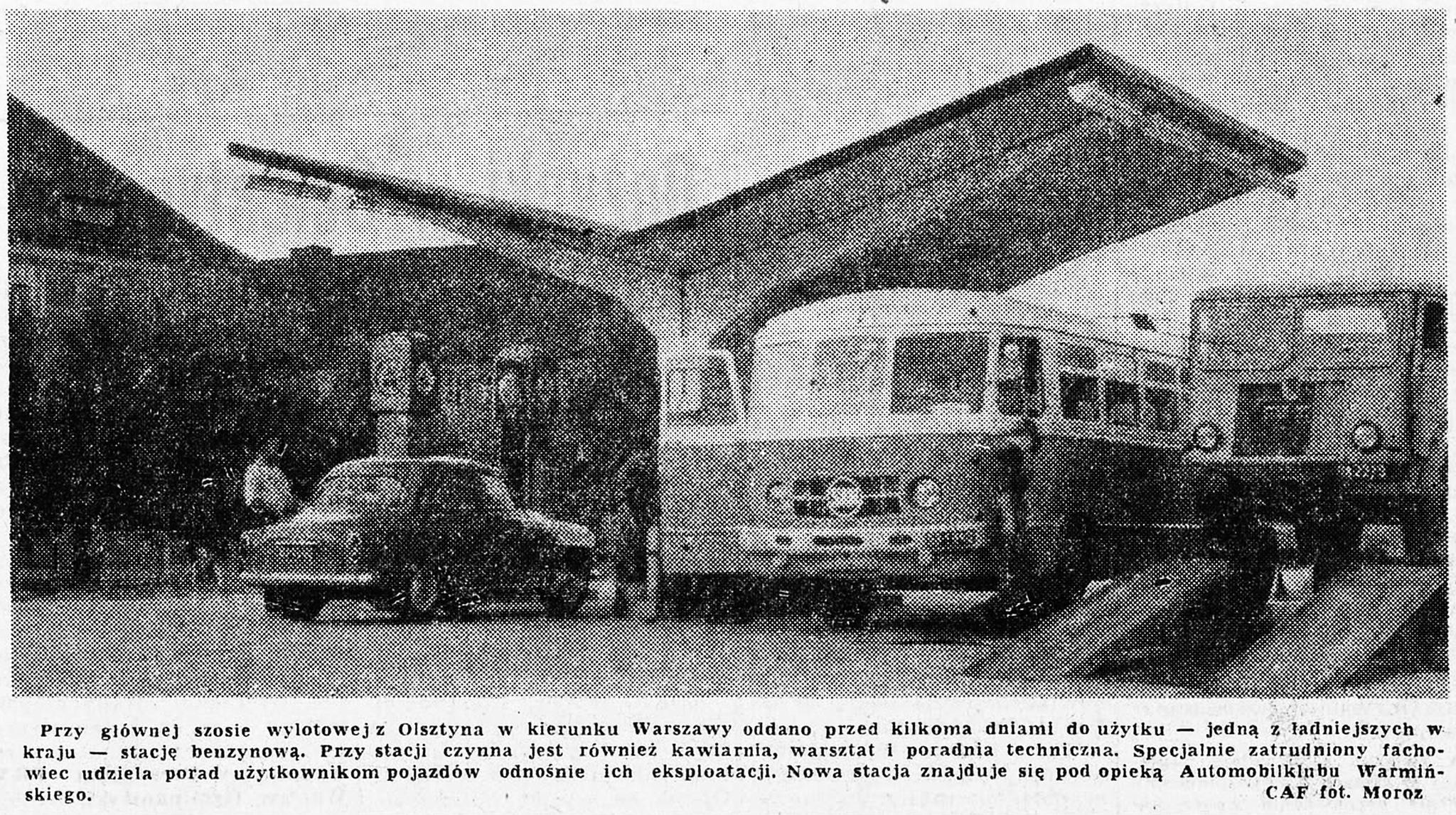 1962 , Stacja benzynowa - jedna z ładniejszych w kraju. Szosa wylotowa z Olsztyna w kierunku Warszawy. [Gazeta Poznańska]Skomentuj zdjęcie