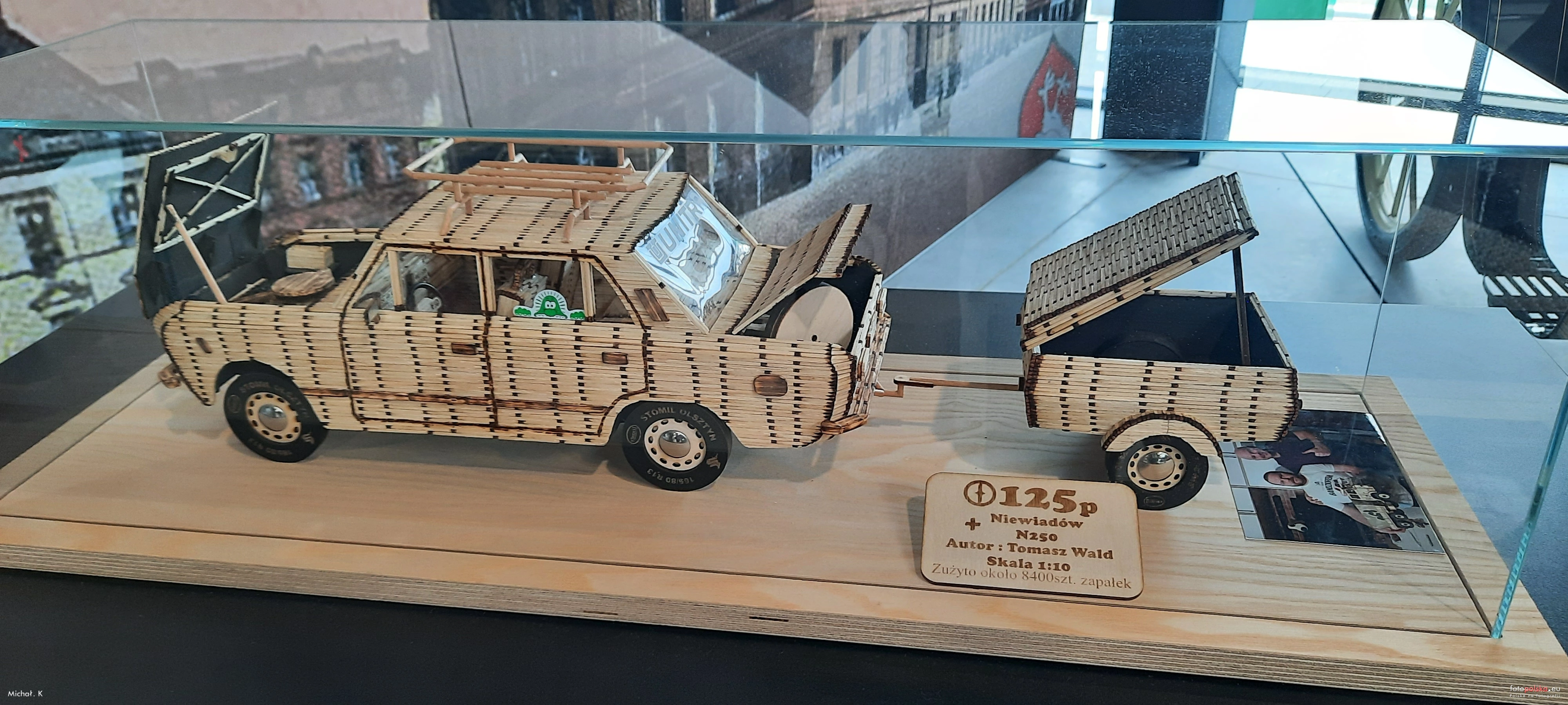 22 lipca 2024 , Fiat 125p oraz przyczepa Niewidów N250 wykonane z około 8400 szt. zapałek autorstwa Tomasza Walda.Skomentuj zdjęcie |
