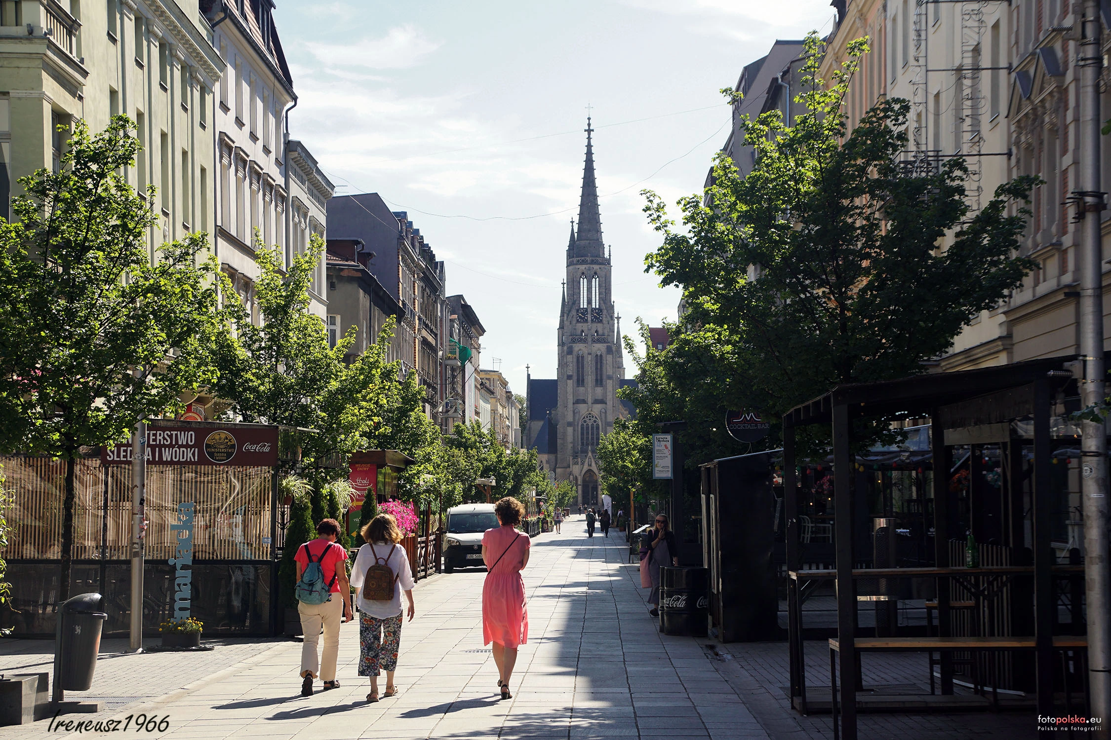 2 pobrania 83 odsłony 6 średnia ocen Poprzednie i następne zdjęcia ireneusz1966 Obiekty widoczne na zdjęciu ul. Mariacka więcej zdjęć (744) Dawniej: Holtze Strasse Ulica Mariacka została zabudowana w drugiej połowie XIX wieku według planu Nepilly'ego z 1875 (blok zamknięty ulic na wschód od Rynku). W 1876 ulicy nadano nazwę Richard Holtzestraße na cześć, obchodzącego wtedy dwudziestopięciolecie pracy jako lekarz, Richarda Holtzego − przewodniczącego ówczesnej Rady Miejskiej Katowic. Nazwa ta obowiązywała do 1922, oraz w latach niemieckiej okupacji Polski (1939−1945). Pod koniec XIX wieku przy ulicy działała restauracja Kasulke[7]. 27 stycznia 1901 w domu przy Holtzestraße 18 urodził się Willy Fritsch − jedna z najważniejszych gwiazd dawnego kina niemieckiego. Przed I wojną światową pod numerem 4−6 założono hotel Savoy; istniał do 1939; w okresie międzywojennym należał do A. Czaplickiego. W restauracji hotelu dnia 20 czerwca 1922 na uroczystym śniadaniu spotkali się Wojciech Korfanty i Józef Rymer ze Stanisławem Szeptyckim. W dwudziestoleciu międzywojennycm przy ulicy swoją siedzibę miały: Bank Śląski - Banque de Silésie SA (oddział, pod numerem 24), hotel Europejski (wzniesiony w latach 1930−1931 przy ul. Mariackiej 15), restauracja Kessel Juliusza Grundmanna (pod numerem 27), restauracja Józefa Adamaszka (pod numerem 24), cukiernia Astoria Walentego Rybki (ul. Mariacka 1), oddział towarzystwa ubezpieczeniowego Kotwica (pod numerem 3). Około 1926 pod numerem 2 działalność prowadził Bank Dewizowy, pod numerem 12 − Górnośląski Bank Związkowy, pod numerem 17 − Ogólna Spółka Rewizyjna i Powiernicza Vera. Przed II wojną światową przy ul. Mariackiej 5 założono Dom Techniczno-Handlowy Industria Ludwika Żmigroda. W latach 1925−1926 pod numerem 13 znajdował się konsulat Brazylii i redakcja oddziału Ilustrowanego Kuriera Codziennego, pod numerem 14 − biuro "Polskiego Kolejarza Górnośląskiego". Na rogu ul. Mariackiej, obok Astorii, zlokalizowany był początkowy przystanek linii atobusowej Katowice −Sosnowiec, uruchomionej we wrześniu 1925. W dwudziestoleciu międzywojennym ulica Mariacka znana była z dużej ilości pracujących tu prostytutek, w szczególności po zlokalizowaniu na rogu z ul. Stanisława Hotelu Europejskiego, gdzie często wyczekiwały na klientów. Kwartał ulic: św. Jana, Dworcowa, Mariacka, Andrzeja Mielęckiego, Stanisława i Starowiejska w zamyśle władz Katowic ma się stać tzw. "małym rynkiem". Pierwszym krokiem była organizacja konkursu na opracowanie koncepcji programowo-przestrzennej, urbanistyczno-architektonicznej zagospodarowania ulic św. Jana, Dworcowej, Mariackiej oraz Andrzeja Mielęckiego, Stanisława i Starowiejskiej w 2005, który wygrało konsorcjum Autorska Pracownia Architektury Kuryłowicz & Associates i Biuro Autorskie "A i R" Jurkowscy Architekci, min. za "dwustronne obsadzenie drzewami ulicy Mariackiej odtwarza jej pierwotny charakter alei ulicznej zamkniętej widokiem kościoła NMP". Remont ulicy Mariackiej przeprowadzono w 2008; koszt przebudowy wyniósł około 12 milionów złotych. W dniach 4−26 lipca 2009 na ulicy Mariackiej odbył się cykl imprez Letnie Granie na Mariackiej. 22 września 2009[21] rozpoczął działalność portal internetowy, poświęcony ulicy − Mariacka.eu. Znajdujące się na tej ulicy nowoczesne ławki i stół Elipse, projektu Macieja Rutkowskiego, zostały nagrodzone w konkursie Śląska Rzecz (2009). Dnia 6 września 2010 odbyła się impreza Mariacka.OPEN[22], w dniach 8−17 września 2010 na deptaku znajdował się "Jarmark Katowicki", promujący miasto i sam deptak; 18 i 19 września 2010 na ulicy Mariackiej odbyły się koncerty bluesowe, a 21 września 2010 otwaro wystawę "Katowickie Synagogi", prezentująca materiały archiwalne dotyczące katowickiej synagogi, pochodzące z archiwum Urzędu Miasta Katowice. Od 2009 na ulicy Mariackiej cyklicznie odbywa się szereg imprez plenerowych i koncertów oraz wydarzeń kulturalnych. Pod koniec 2010 kamienicę na rogu ul. Francuskiej i ul. Mariackiej wyburzono. 27 marca 2011 na ul. Mariackiej odbył się koncert "Solidarni z Białorusią", zorganizowany przez Stowarzyszenie Inicjatywa Wolna Białoruś. Pod koniec kwietnia 2011 na deptaku zasadzono trzydzieści ozdobnych drzewek wiśni piłkowanej rozpoczęto także naprawę odcinka od skrzyżowania z ul. Francuską do Kościoła Mariackiego (koszt naprawy szacowany jest na milion złotych, trwała do czerwca 2011; w 2010 ta część deptaku została uszkodzona przez betoniarkę) |