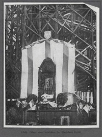 1916 , Ołtarz przed kościołem. Źródło: 125-cio lecie Konstytucji na ziemiach piotrkowskiej, sieradzkiej i kaliskiej