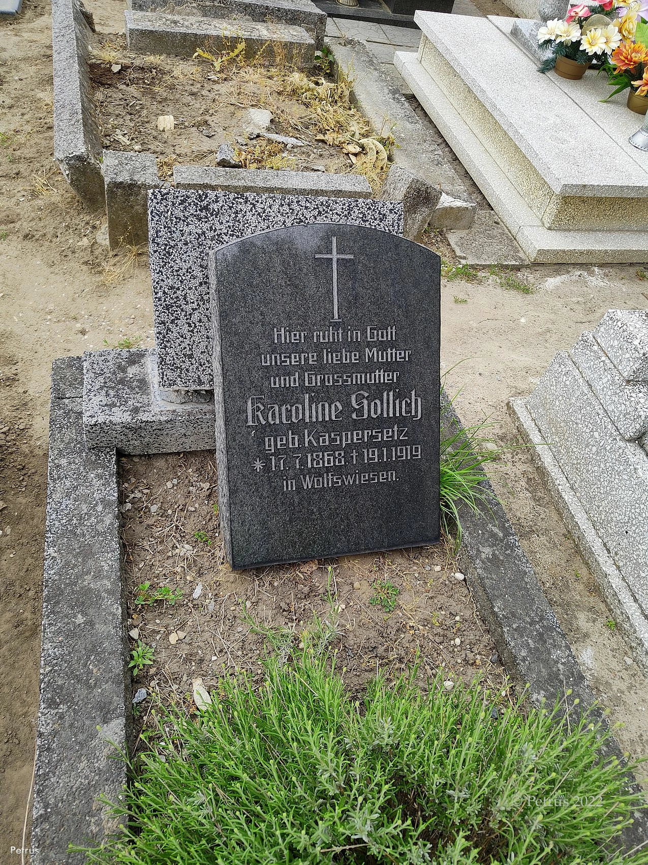 maj 2022 , Stary nagrobek mieszkanki Łąk Kozielskich (prawdopodobnie nagrobek wykonano dużo później, bo taką nazwę miejscowość posiadała tuż przed II WŚ)Skomentuj zdjęcie |