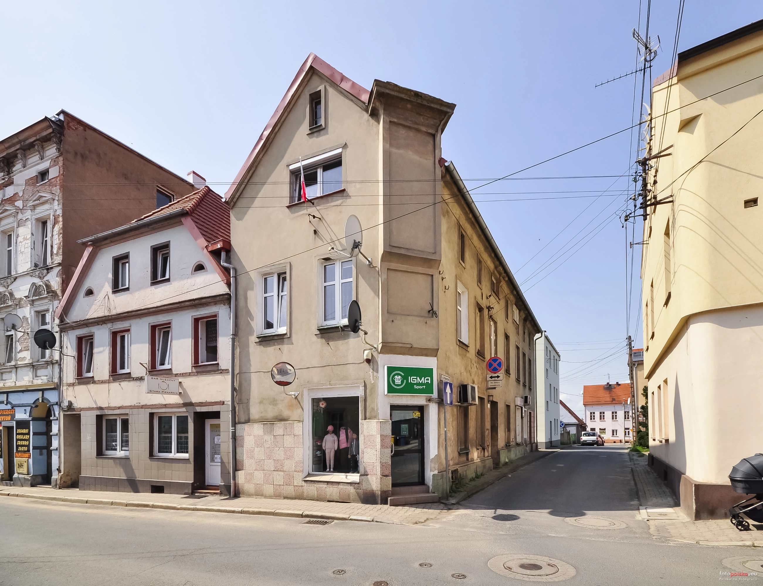 3 maja 2025 , Kamienica nr 3 przy ul. Poprzecznej w Żmigrodzie. Widok ze skrzyżowania z ul. Wileńską. |