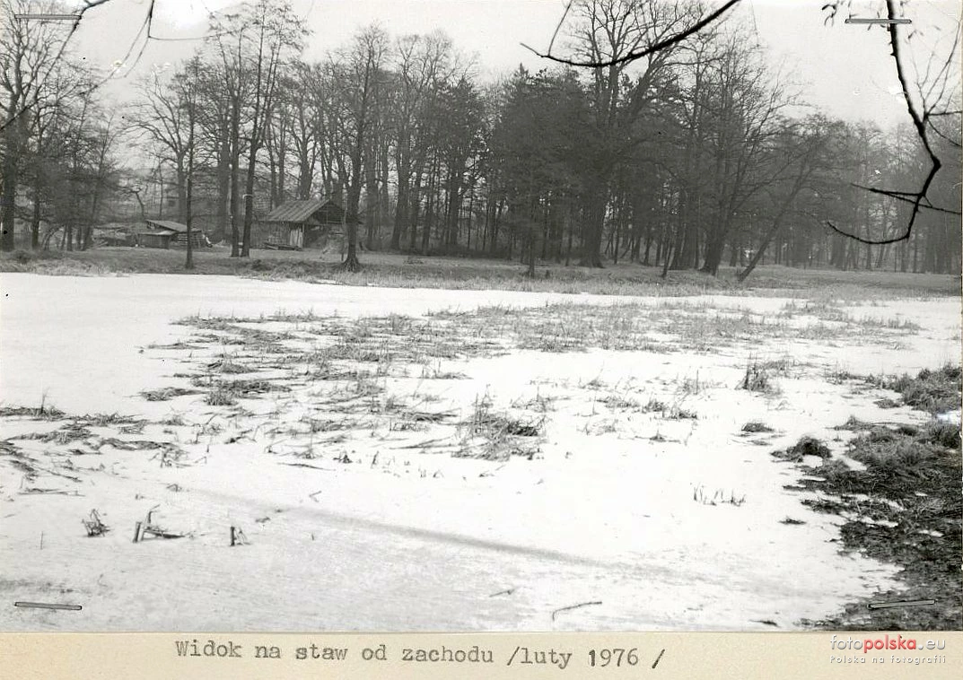 luty 1976 , Park pałacowy w Mrozowie. (Zdjęcie pochodzi z "Katalogu parków woj. wrocławskiego. Park w Mrozowie")