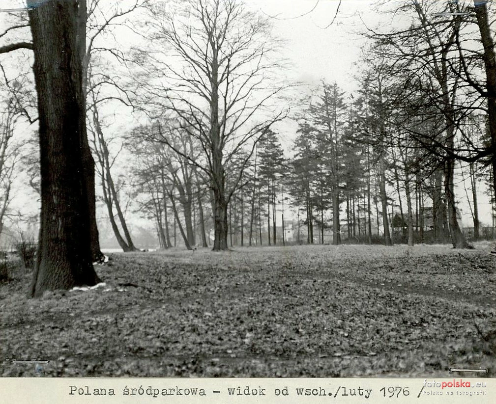 luty 1976 , Park pałacowy w Mrozowie. (Zdjęcie pochodzi z "Katalogu parków woj. wrocławskiego. Park w Mrozowie")