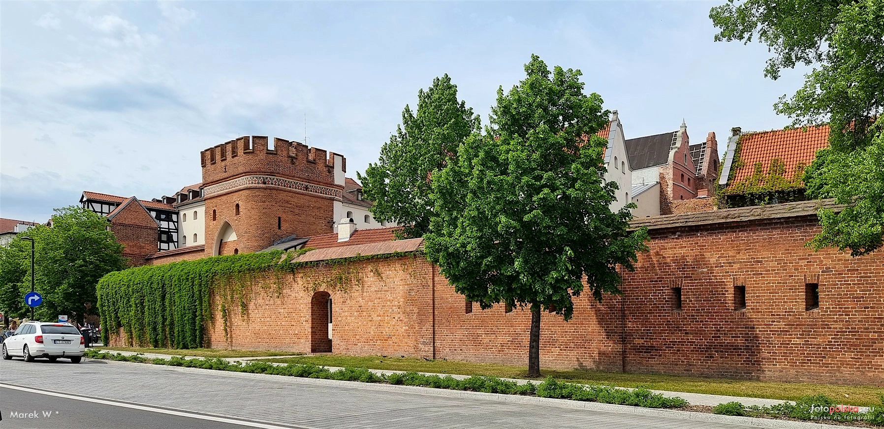 bu. Filadelfijski więcej zdjęć (828) Dawniej: Graf-Spee-Ufer, Am Pilz, Uferstr. Nadbrzeżna Bulwary nadwiślańskie, ciągnące się wzdłuż Wisły na całej długości murów miejskich i dalej w obie strony, są jednym z najbardziej ulubionych miejsc spacerowych. Zostały zbudowane na miejscu dawnego nabrzeża portowego, funkcjonującego od początku istnienia miasta aż do lat 70. XX w. W 1976 r. nadano obecną nazwę nawiązującą do amerykańskiego miasta partnerskiego Torunia. Główną część dawnego portu od Bramy Ducha Św. do Bramy Żeglarskiej zajmowały urządzenia portowe, 200-metrowy drewniany pomost wyładunkowy, żuraw, magazyny towarowe i inne, a od 1585 r. całe nabrzeże portowe było wybrukowane. Tętniło więc tu niegdyś bujne życie, wypełnione gromadkami żeglarzy i kupców uwijających się przy dziesiątkach żaglowców przycumowanych do nabrzeża, skąd transportowano wyładowywane towary zamorskie do olbrzymich spichrzy, piwnic i składów. Do portu toruńskiego przybijały w średniowieczu statki pełnomorskie, a wielkim handlem morskim, wg zachowanych wykazów z XIV w., trudniło się aż 172 kupców toruńskich. Mury miejskie więcej zdjęć (47) Zbudowano: XIV wiek Zabytek: - Najdłuższy odcinek zachowanych toruńskich murów obronnych ciągnie się wzdłuż Wisły. Jest to jednak zaledwie nieco ponad kilometrowa część z dawnego 3-kilometrowego obwodu (łącznie murów Starego Miasta i Nowego Miasta, nie licząc murów zamku krzyżackiego). Poza tym fragmenty murów wraz z innymi elementami średniowiecznego i nowożytnego systemu fortyfikacyjnego znaleźć można m.in. wzdłuż południowego i północnego odcinka ulicy Podmurnej oraz w okolicach placu po dominikańskim zespole klasztornym i Kościele św. Mikołaja. Dawne, średniowieczne mury miejskie zostały w większości rozebrane przez władze pruskie w latach 1873-1889, głównie w części wschodniej, zachodniej i północnej toruńskiego Średniowiecznego Zespołu Miejskiego. Toruń praktycznie od początku istnienia, tj. od połowy XIII wieku, otoczony był podwójnym (tzw. mur niski z zewnątrz i mur wysoki od wewnątrz miasta) pierścieniem murów obronnych z mokrą fosą pomiędzy nimi (jedynie od strony Wisły mur był pojedynczy). W ciągu kolejnych lat i wieków mury ciągle udoskonalano - były podwyższane, wzmacniane, rozbudowywane; po raz pierwszy już w końcu XIII wieku. Jako pierwsze zaczęto budować mury od zachodniej strony miasta. Fragment zachodniego odcinka murów obronnych Starego Miasta przy placu Rapackiego, między Krzywą Wieżą a nieistniejącą Bramą Starotoruńską, datowany jest na lata 1246-1262. Jest to jednocześnie najstarszy w Polsce zachowany fragment muru miejskiego. Swój system obronny posiadały wszystkie trzy toruńskie jednostki urbanistyczne: Stare Miasto, Nowe Miasto (mur istniał też pomiędzy nimi, tj. wzdłuż ulicy Podmurnej, nawet pomimo połączenia miast w 1454 roku) oraz Zamek Krzyżacki. Obwód murów staromiejskich wynosił 1,7 km, obwód murów nowomiejskich: 1,1 km. Nieodłącznym elementem obronnym tego systemu fortyfikacyjnego były baszty, bramy i barbakany. W ciągu 3,2-kilometrowej linii toruńskich murów obronnych znajdowały się około 54 baszty, 12 lub 13 bram i 2 barbakany typowe. Do dziś zachowało się: ok. kilometrowej długości odcinek murów, 9 baszt i 3 bramy. Toruńskie średniowieczne obwarowania należały do najsilniejszych nie tylko w państwie krzyżackim, ale i na obecnych ziemiach polskich. Ich siła polegała na zastosowaniu podwójnych murów z międzymurzem, nawodnionej obmurowanej fosy, wzniesieniu zespołów obronnych bram: Starotoruńskiej i Chełmińskiej składających się z barbakanów i baszt. Fortyfikacje takie miały tylko nieliczne miasta europejskie. Od początku budowy tak mury, jak i baszty i bramy, obdzielane były ozdobami; zwyczaj dekorowania nie był czymś nadzwyczajnym i w tym typie budownictwa. Prawie zawsze na basztach i bramach umieszczano ceramiczne fryzy ornamentacyjne, wprowadzając także malowane motywy na tynkowanych blendach. Poszczególne odcinki murów przyozdabiano wprowadzając rombowe układy z ciemnych cegieł "zendrówek". Zasada dekorowania fortyfikacji tłumaczona jest m.in. tym, że miały one w oczach przyjezdnych i atakujących podkreślać bogactwo i potęgę miasta. Mury, oprócz funkcji militarnych, dla średniowiecznego społeczeństwa miały charakter ideowy. Mur był symbolem miasta, określał jego granice, wewnątrz których toczyło się życie wg ustalonych zasad i norm prawnych. Źródło: ul. Fosa Staromiejska więcej zdjęć (693) Dawniej: Grabenstraße Ulica Fosa Staromiejska w Toruniu (dawniej Grabenstraße) - jedna z ulic na terenie Zespołu Staromiejskiego. Jak sama nazwa wskazuje, przebieg ulicy powiązany jest z układem dawnych murów miejskich. Zgodnie z numeracją działek, ul. Fosa Staromiejska rozpoczyna się od skrzyżowania z ul. Kopernika i stanowi naturalne przedłużenie ul. Pod Krzywą Wieżą. Obecna ulica Kopernika zamknięta była Bramą Starotoruńską, której miejsce zajmuje dziś skrzyżowanie ulic Kopernika i Fosa Staromiejska. Po wschodniej stronie ulicy znajduje się zwarta zabudowa dzielnicy staromiejskiej, po zachodniej zaś pas zieleni przechodzący w pl. Rapackiego. Niezabudowany obszar powstał po niwelacji terenu po dziewiętnastowiecznych fortyfikacjach. Po zachodniej stronie ulicy znajduje się fontanna stanowiąca pozostałość po mokrej fosie. Po kilkudziesięciu metrach po zachodniej stronie znajduje się kamienica zwana Łukiem Cezara z przebitym przejściem na ul. Piekary i ul. Różaną, a dalej w kierunku Rynku Staromiejskiego. W przeszłości pod Łukiem Cezara kursowały miejskie tramwaje. Po stronie zachodniej stoi Collegium Maximum UMK, dawny Bank Rzeszy. W dalszym swym biegu, ulica Fosa Staromiejska przebiega pomiędzy budynkami Sądu Rejonowego (wschód, Fosa Staromiejska 10a) i Collegium Minus 