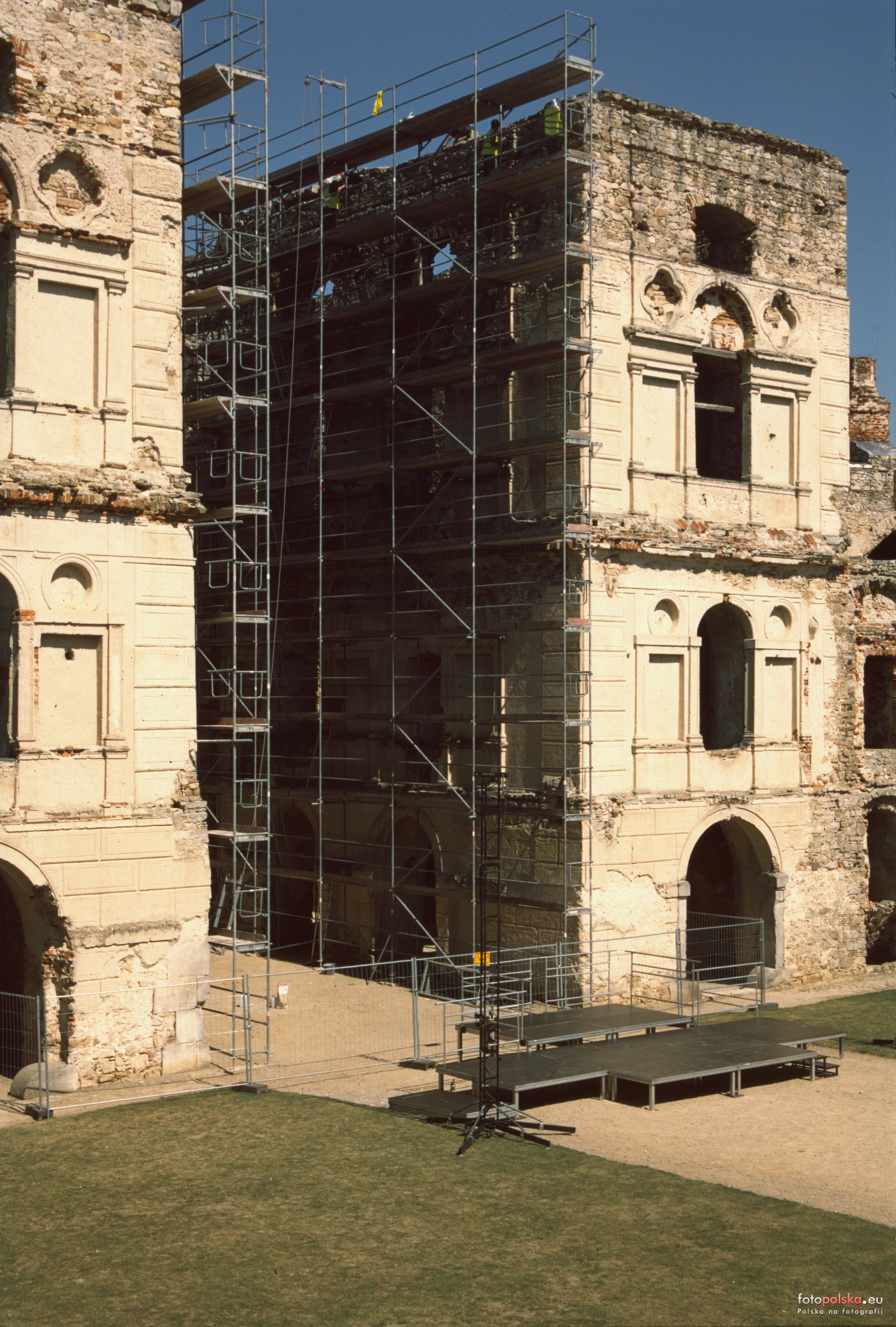 14 sierpnia 2025 , Remont trwa, na ziemi przygotowana już scena na koncert. Skan diapozytywu Fujifilm Provia 100F.Skomentuj zdjęcie |