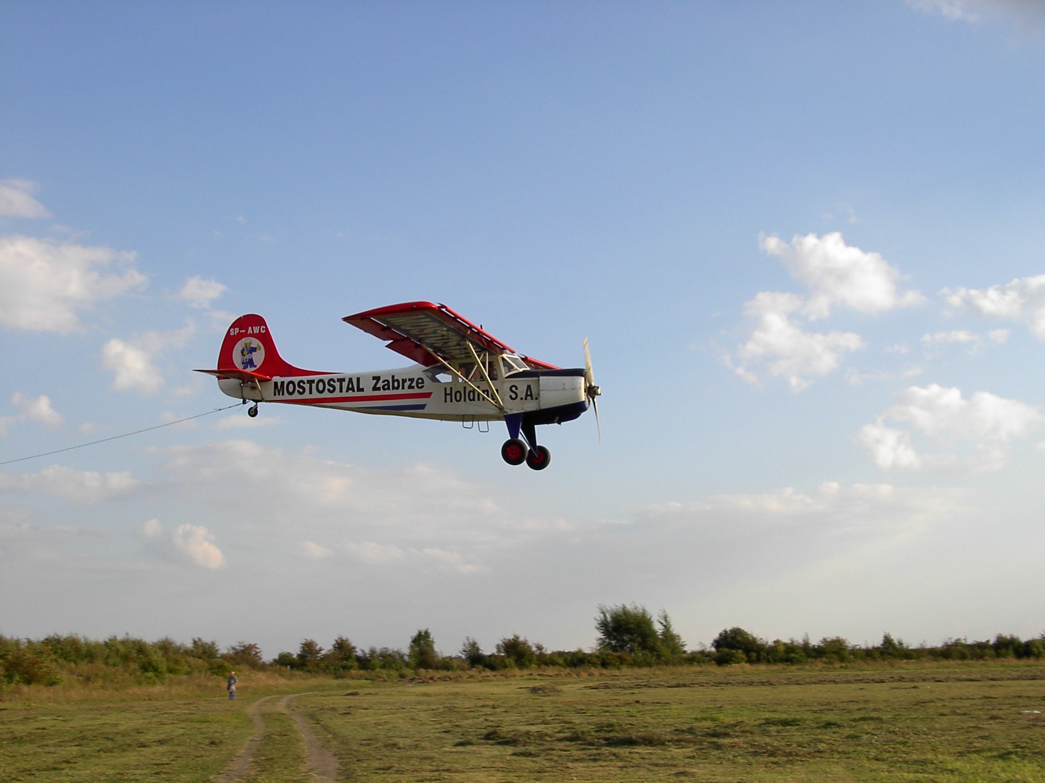 26 sierpnia 2003 , Lotnisko Gliwice. Lądujący samolot po holowaniu szybowca.Skomentuj zdjęcie
