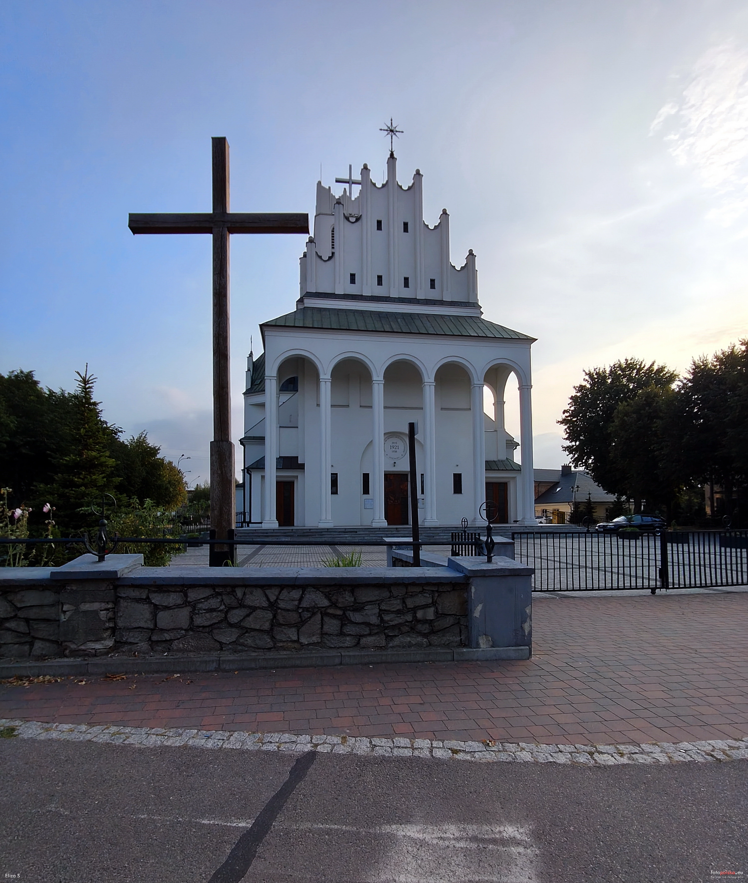 3 września 2025 , Kościół św. Michała Archanioła, widok z ul. Fabrycznej. Na pierwszym planie fragment ogrodzenia terenu kościoła i za nim jeden z dwód drewnianych krzyży.Skomentuj zdjęcie |