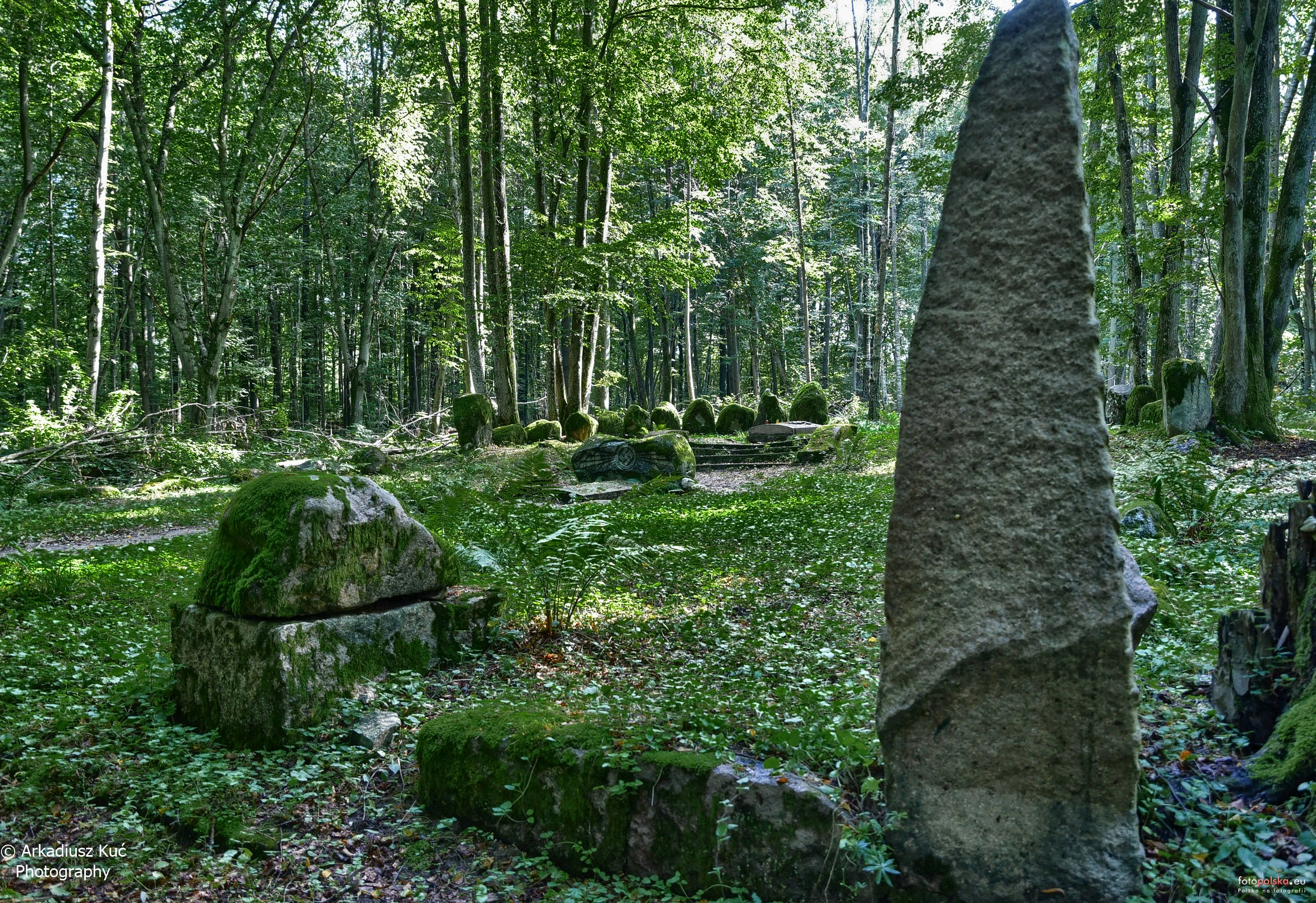 0 pobrań 102 odsłony 6 średnia ocen Poprzednie i następne zdjęcia Arkadiusz K. (Arro) Obiekty widoczne na zdjęciu Pseudomegalityczny cmentarz Dohnów więcej zdjęć (24) Atrakcja turystyczna Zbudowano: 1924 Zabytek: - Pseudomegalityczny cmentarz rodu zu Dohna, czasami nazywany „Polskim Stonehenge” to mało znane, dość trudno dostępne, ale zdecydowanie warte zobaczenia miejsce. Cmentarz założył w 1924 r. jeden najważniejszych arystokratycznych rodów niemieckich w Prusach zu Dohna, który jedną ze swoich siedzib miał w pobliskim Markowie. W swojej formie miał nawiązywać do starożytnych budowli megalitycznych. Cmentarz składa się z trzech półkręgów, do których prowadzą kamienne schody. Pierwszy tworzą brzozy, które dodają temu miejscu dodatkowego uroku. W drugim, zbudowanym z potężnych głazów, możemy zobaczyć grób zmarłego w 1924 r. Friedricha Ludwiga. Był on szambelanem królewskim pruskim, a także naczelnikiem powiatu Markowo. Na jego grobie znajduje się herb rodowy, czterolistna koniczyna, a także napis: So spricht der Geist, sie sollen ausruchen von ihren Mühen, denn ihre Werke folgen ihnen nach Offb. Johannis 14.v.13. (W wolnym tłumaczeniu „Tak mówi Duch, powinniście odpocząć od swoich trudów, a Wasze czyny pójdą za Wami”). Trzeci i ostatni krąg tworzy grób Christopha Friedricha, syna Friedricha Ludwiga, który zginął w wypadku samochodowym w 1934 r. Na jego płycie nagrobnej widnieje napis: Christoph Friedrich Burggraf und Graf zu Dohna-Lauck 12.12.1907 † 3.9.1934. Obok nagrobka możemy obejrzeć kamień, na którym z jednej strony wyryto napis: Der Tod ist verschlungen in der Sieg Cor.15.52. Ich morte auf den Christus. Adolf Hitler („Śmierć jest zaplątana w zwycięstwo. Umrę w Chrystusie. Adolf Hitler”), a z drugiej hitlerowską swastykę, ponieważ młodszy z rodu był miłośnikiem ideologii faszystowskiej. Na podst. zasmakujwpolsce.eu |