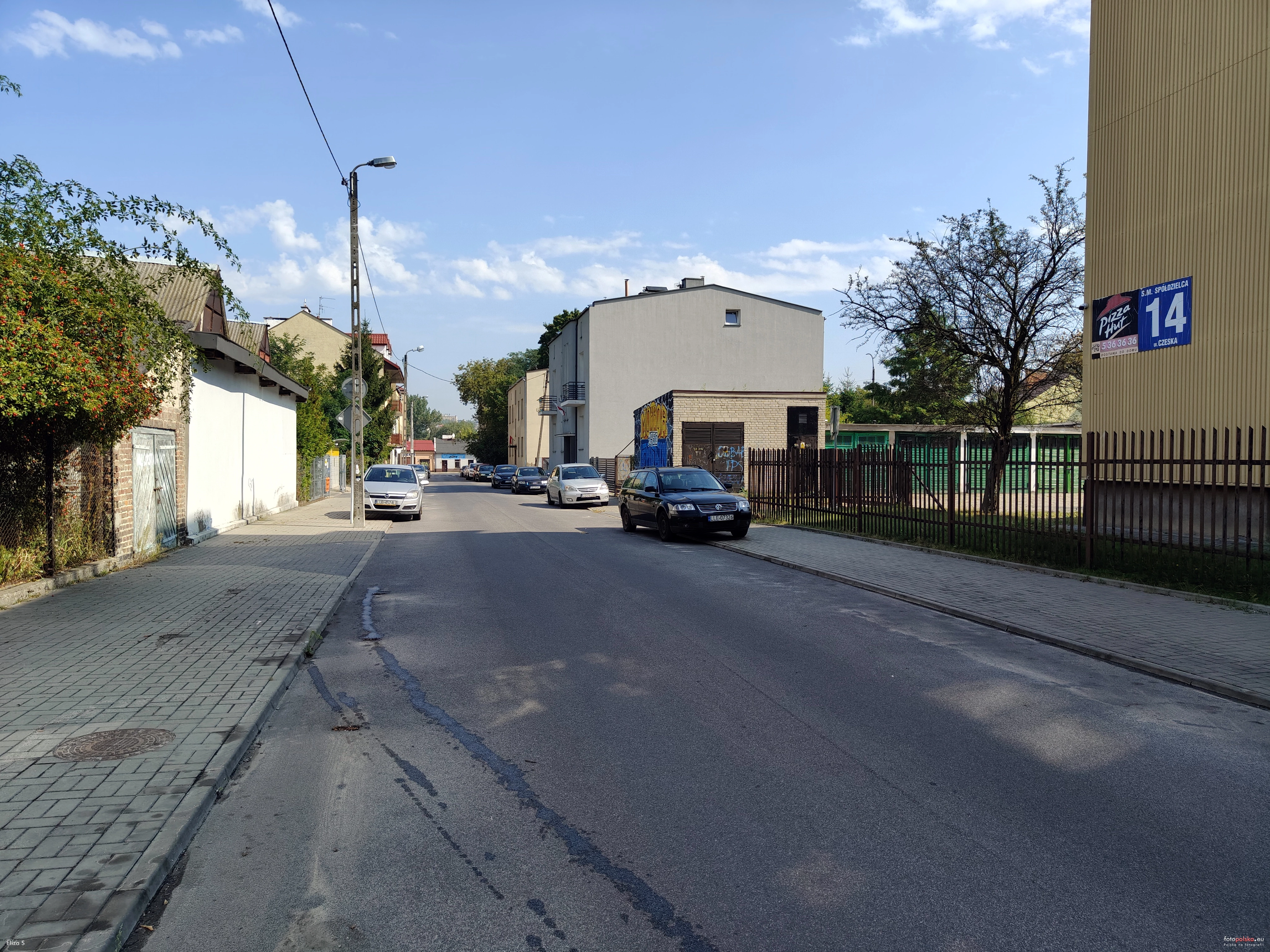 6 września 2025 , Ulica Czeska w Dzielnicy Dziesiąta, widok w kierunku ul. Władysława Kunickiego na wysokości bloku mieszkalnego Czeska 14 (z prawej).Skomentuj zdjęcie |