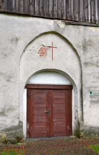 Elewacja południowa otwory okienne różnej wielkości, rozmieszczone niesymetrycznie. Zamurowany otwór wejściowy-pozostawiona blenda ostrołukowa. Między otworami szkarpy nierównej wysokości.