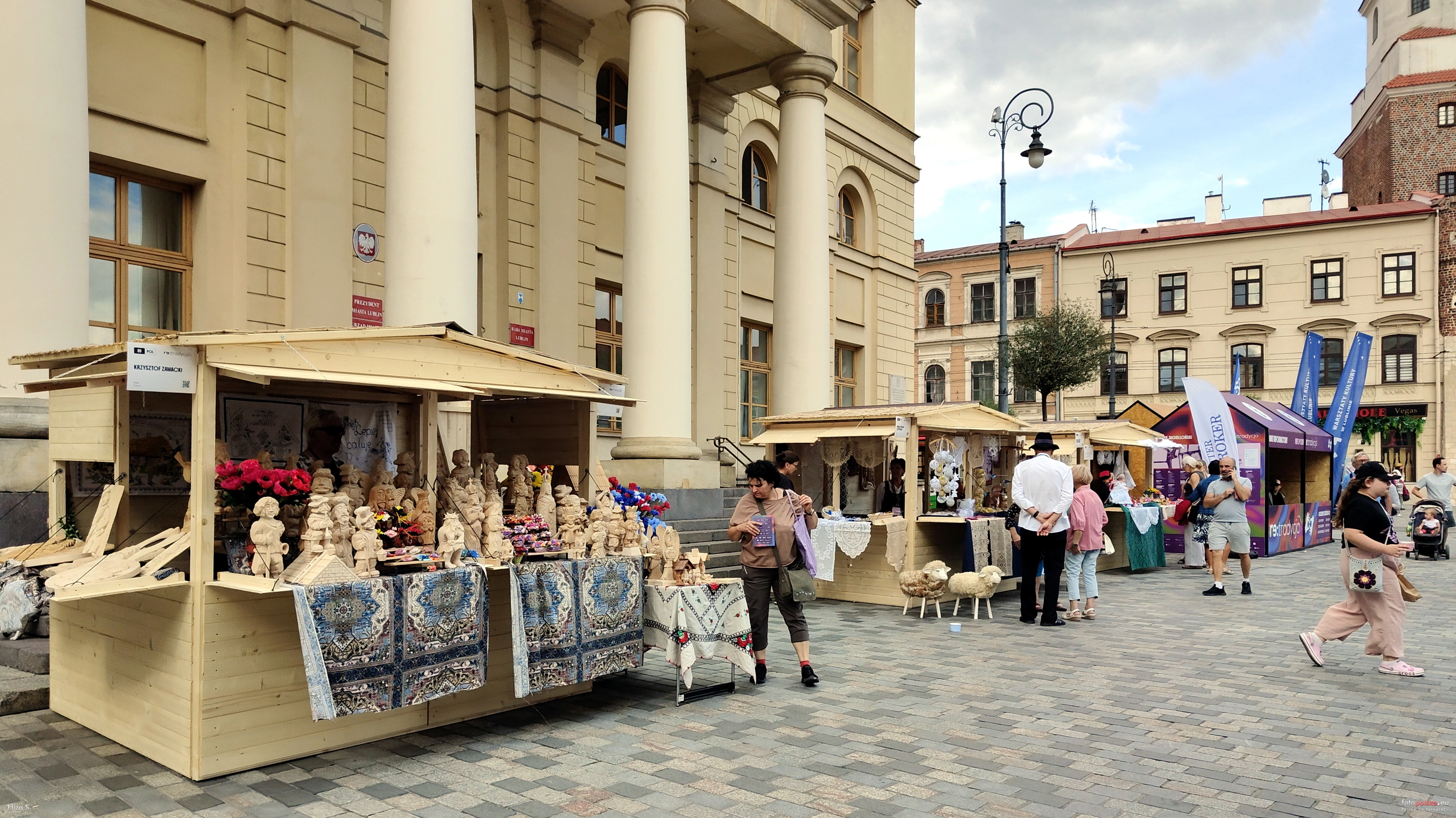 22 sierpnia 2025 , Re:tradycja – Jarmark jagielloński 2025, stoiska z rękodziełem artystycznym na Placu Króla Władysława Łokietka pzry Nowym Ratuszu (z lewej).Skomentuj zdjęcie |