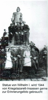 1944 , Posąg Wilhelma I był w 1944 roku chętnie wykorzystywany przez pacjentów szpitala wojskowego jako miejsce do pamiątkowych zdjęćSkomentuj zdjęcie