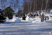1 lutego 2012 , Fragment "Skwerku Trójki" w Szklarskiej Porębie; widoczne rzeźby śniegowe - pozostałość po "Śniegolepach" i plansze wystawy plenerowej: "Początki sportów zimowych w Karkonoszach i Górach Izerskich".Skomentuj zdjęcie |